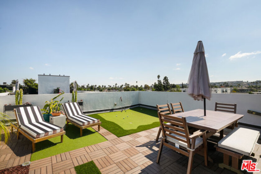 Discover modern design and open-concept living in this 2021-built freestanding home in West Adams. Spanning 2,188 sq ft across three levels, it offers four bedrooms, three with ensuite baths, plus thoughtful indoor-outdoor spaces throughout. The private rooftop deck is the ultimate highlight, transformed into a second living area with a putting green and generous space to entertain, all framed by sweeping 360-degree city and hillside views. Balconies and oversized windows on every floor invite light and leafy outlooks, while a dramatic wall of windows floods the bedroom level with natural light. The main floor is ideal for gatherings, with a spacious great room, balcony, and chef's kitchen with high-end appliances. Modern conveniences include central air, a direct-entry two-car garage, smart wiring, exterior security cameras, and a gated driveway. Moments from acclaimed dining and nightlife at Alta, Mizlala, Vicky's All Day, Chulita, and "Damn I Miss Paris," with art galleries, shops, and Johnnie's Pastrami all nearby, this is West Adams living at its best.