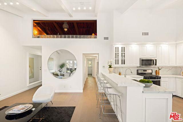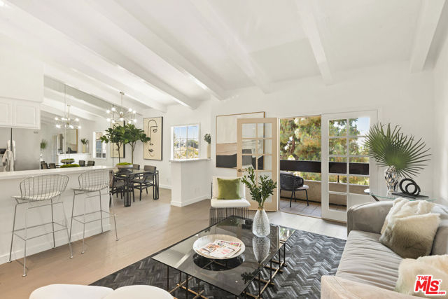 With sweeping views of the enchanting Hollywood Hills, this top-floor 2BD/2BA condo is a rare retreat where golden-hour sunsets and treetop vistas set the stage for everyday canyon magic. Inside, soaring vaulted ceilings and southwest light create an airy, expansive feel. The balcony off the living room with french doors faces westward to enjoy daily sunsets and treetop views. Stylishly remodeled throughout, the home features wide-plank hardwood floors, designer lighting, and a sleek open-concept kitchen with stainless steel appliances against a backdrop of glamorous Milan white quartz counters with a continuous backsplash -- an ultra-elegant yet highly functional design. The primary suite offers spa-like comfort with a deep soaking tub, oversized shower, bidet and refined finishes. A whimsical upstairs loft once curated as a Moroccan-style lounge adds an unexpected escape and can be easily reimagined as a meditation area, reading nook, or nap space. Life at the Cahuenga Hills Tennis Club is resort-style and serene. This guard-gated community spans 15 lush acres and offers three tennis courts, two swimming pools and spas, a modernized gym with top-tier equipment, saunas, clubhouses, sun decks, private hiking trails around Lake Hollywood, dog parks, and plentiful guest parking. Perfectly positioned just minutes from the Hollywood Bowl, Studio City, Los Feliz and LA's most iconic shops and restaurants, this home is as connected as it is private. Added conveniences include a washer dryer in-unit, double paned windows, and newer HVAC. See HOA coverage in Agent Remarks. Come see this beauty and experience Hollywood Hills living.
