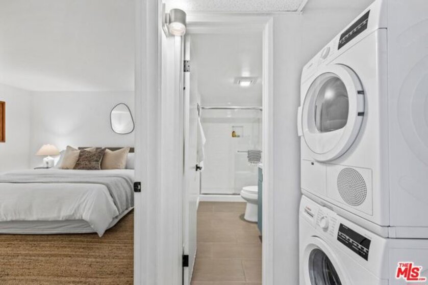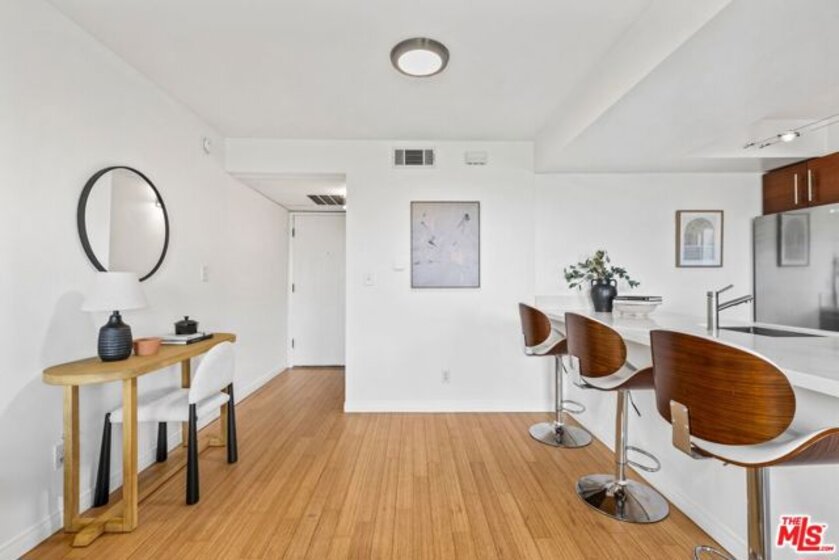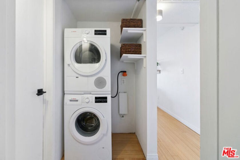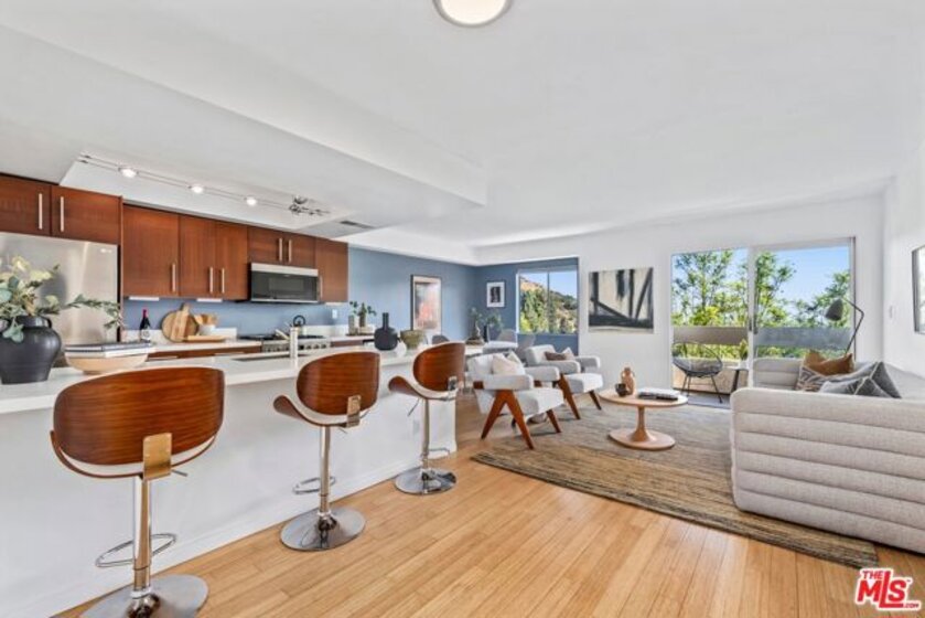 Welcome to Cahuenga Hills Tennis Condominiums, a 15 acre resort style complex with guard gated entry and offering an impressive array of amenities. Nestled into Cahuenga Pass, this unit is in building 3, which is the deepest back into the hills and furthest away from the freeway. A bright unit, with bamboo flooring and tons of natural light. The kitchen features a brand new stainless steel Bosch 800 Series, industrial grade gas range with 5 burners, Frigidaire Pro over-the-range microwave / convection oven combo and a stainless steel wine cooler. Kitchen counters are white quartz and with bar-top seating, allow one to move freely from the living room to the kitchen while enjoying the view across the Hills towards the South Bay. Before the bedroom, and off the entry, is your in-unit laundry area featuring a new Bosch 300 series stackable front load washer/ dryer. The home has a keyless smart entry pad and an Alexa enabled smart thermostat that controls the central HVAC. The bedroom is generously sized with space for a desk/work space and features a walk-in closet. Off of the living room the balcony has space for bistro table and chairs to enjoy morning coffee or warm evenings. A rare and special feature is that from outside your building there is access the private Terracotta trail leading out of the community and up to the ridge with a spectacular view over Lake Hollywood and the entire city. This invites an active lifestyle, as the community also offers two pools, Jacuzzi, three tennis courts, and a modern/updated gym with top tier equipment. The community clubhouse has two billiard tables and a brand new ping pong table, kitchen and lounge area. In addition to the main pool, right behind our building is a secondary and more secluded one. Be in the heart of town next to LA's top attractions including Runyon Canyon, Franklin Village, and the The Hollywood Bowl with convenient access to the freeways and to the Valley. There is also additional private storage above your assigned covered parking space.