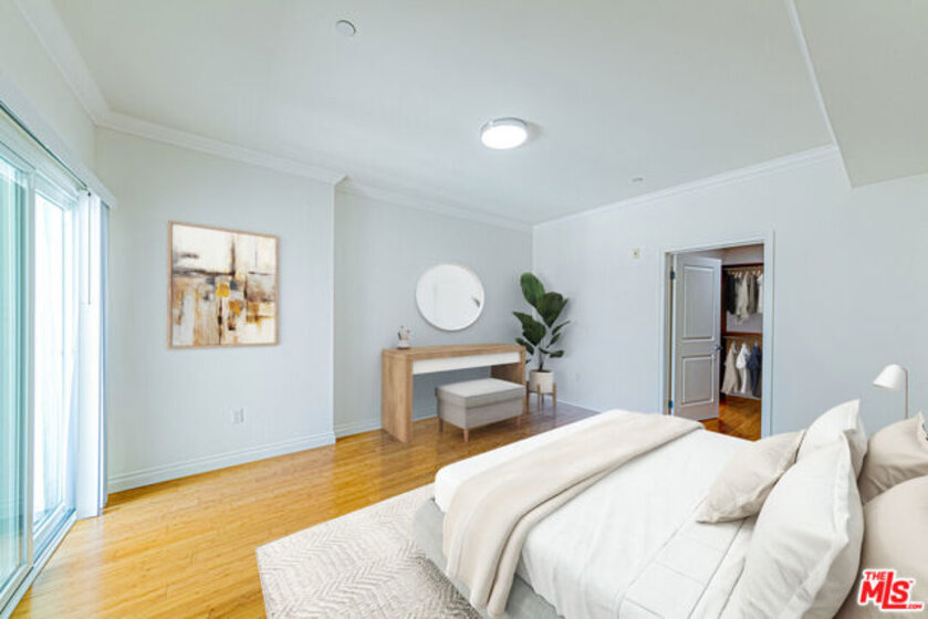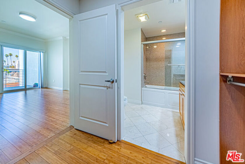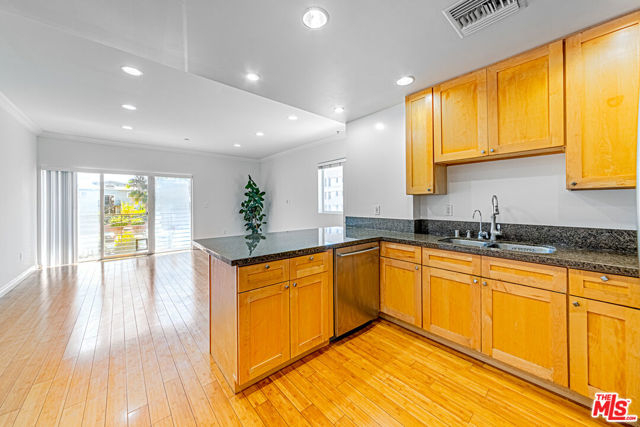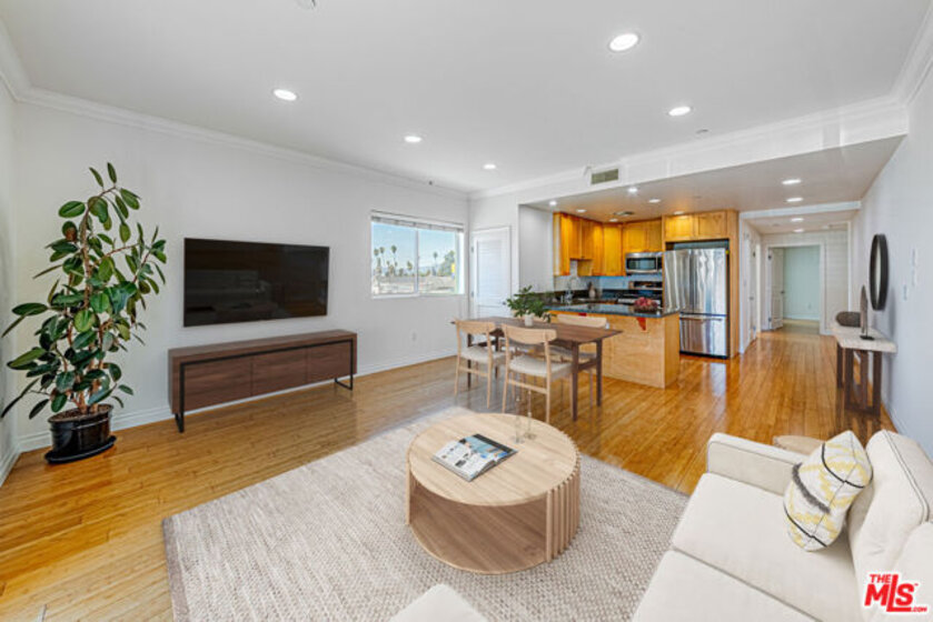 Immaculate Corner Unit, 2 bed, 2 bath situated in LA's vibrant "Koreatown." Designed to meet your lifestyle needs, this residence is ideal as a stylish starter home or a seamless live-work setup. Step into an open floor plan with high ceilings, expansive sliding glass doors, and engineered hardwood floors that extend throughout. The bright, airy living space flows onto a balcony with dazzling city light views, making it perfect for relaxation and entertainment. The gourmet kitchen showcases stunning granite countertops, stainless steel appliances, and contemporary cabinetry, breakfast bar creating an ideal space for culinary creativity. The spacious en-suite master bedroom features a balcony, luxurious bathroom and custom built large walk-in closet. The second bedroom offers flexibility for guests or children. Additional features in-unit washer and dryer, and coveted 2 secured parking spaces. Low Low HOA fees cover essentials like water/sewer, trash... Located just steps from major supermarket Koreatown Galleria, surrounded by endless shopping and so much more.