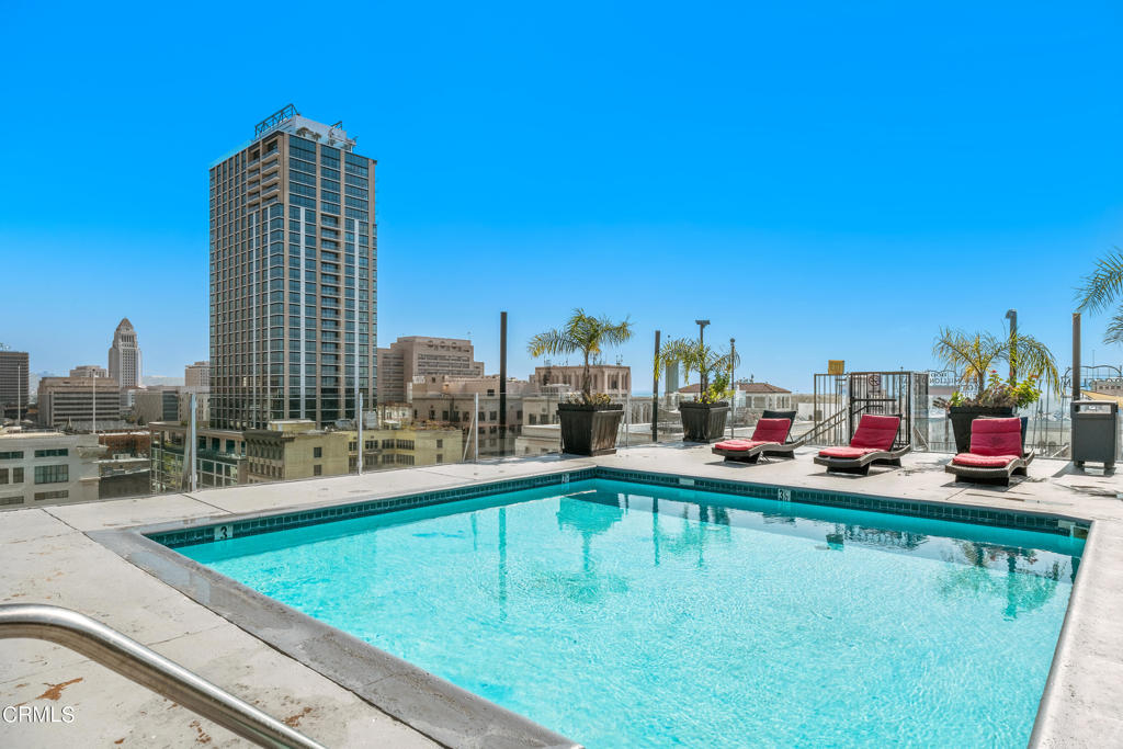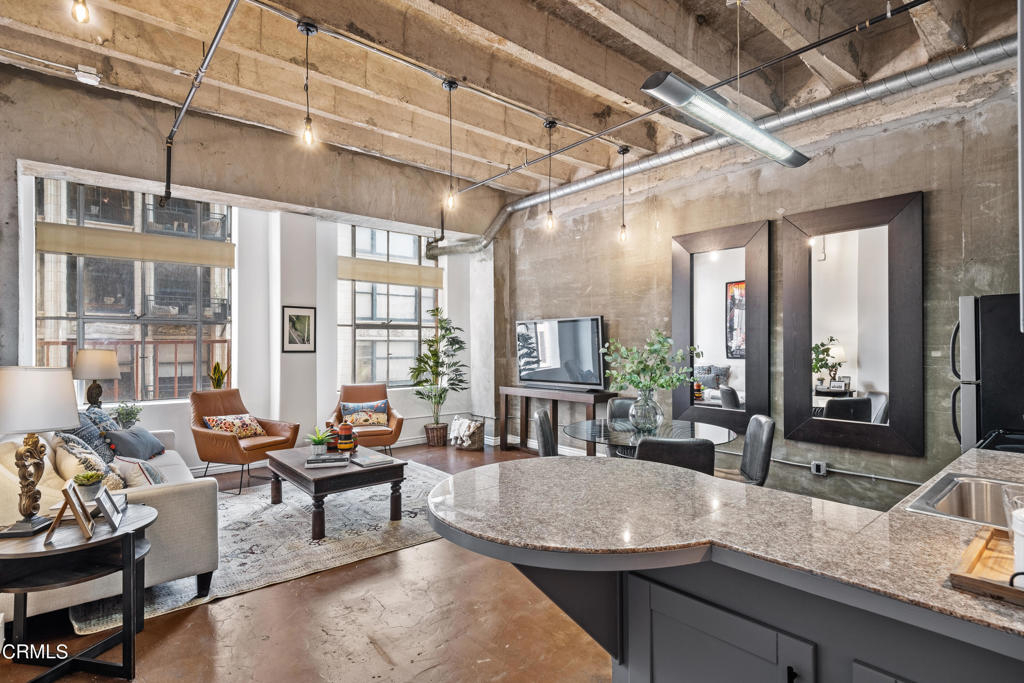 Live ~ Work ~ Play DTLA. Originally built in 1923 and converted to lofts in 2004, the SB Grand is a 12 story building located at the corner of 5th and Broadway in Downtown Los Angeles. Architects Curlett and Bellman designed this Beaux Arts style building as a department store. Loft 519 offers 650 square feet downtown living in the center of the Historic Core. Some of the features include concrete flooring, high ceilings, large windows to the East bringing abundant light, and an open plan kitchen for hosting friends and family. Exterior facing home with views up and down 5th Street. The bedroom area is set behind the kitchen and has a privacy that is uncommon in lofts. The kitchen has tiled marble counters, built-in microwave and plenty of storage space. In-unit stackable Bosch laundry and electric appliances included in sale. Enjoy the sparkling rooftop pool with epic views across LA. 24-hour security guard. Located blocks from The Last Bookstore, Perch, Grand Central Market and the Broadway Theater District. Metro station next door for unparalleled access to the train system. HOA fees in the property are $286/month and include water/trash. No pet restrictions and rentals are permitted in compliance with city rules.