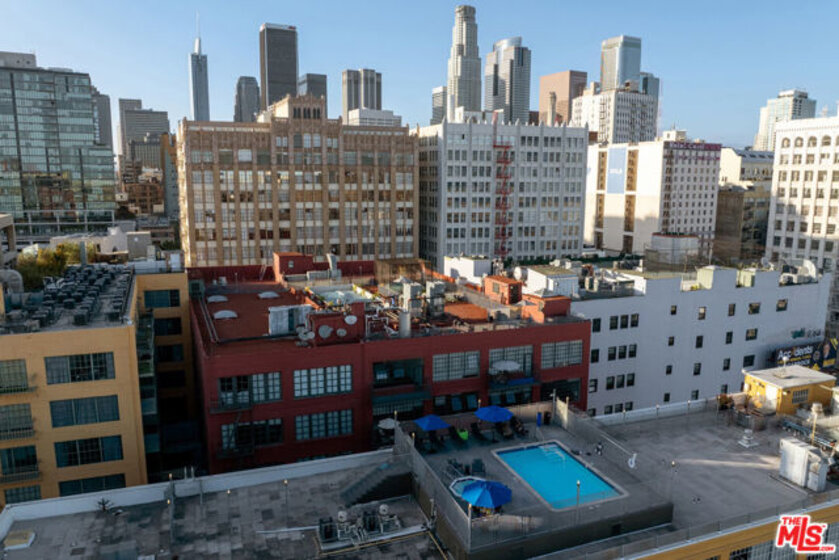 Welcome to your urban sanctuary in the heart of Downtown Los Angeles! This stylish live/work loft offers over 640 sq ft of open-concept living, blending modern design with historic character. Perched on the 10th floor, the space features soaring ceilings, polished concrete floors, and NINE massive industrial-style windows that flood the home with natural light while framing stunning city views. The sleek kitchen with minimalist cabinetry and designer lighting opens seamlessly into the spacious living and dining areas, perfect for entertaining or inspiring creativity. The bedroom nook offers privacy while maintaining the open loft feel, and the contemporary bathroom is finished with clean lines and modern fixtures. Washer and dryer located in the unit.A dedicated subterranean parking space within the complex. Santee Village amenities include the following: Rooftop sun deck, BBQ grills, gym, rooftop basketball court, driving range, rooftop pool and spa.Within walking distance to award winning restaurants, museums and the best coffee shops. A stone's throw away to the Metro Station, L.A. Live, Crypto Arena and freeways. In the center of the action, but quiet and peaceful in the loft itself Listed on the National Register of Historic Places, the Textile Building is a former factory building, 12-story, 69-unit Gothic Revival Landmark. Listed under the Mills Act - earning homeowners generous savings on property taxes. The Mills Act automatically transfers to the new homeowner.