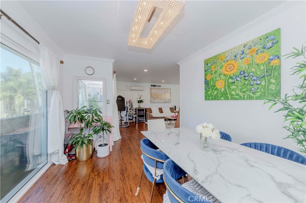 Welcome to this beautifully updated 2-bedroom, 2-bathroom condominium in the heart of Hancock Park/Koreatown. Located in the secure and amenity-rich San Marcus building, this bright and spacious unit offers an ideal blend of comfort, privacy, and sophisticated city living. Spanning 1,330 sq ft, the home welcomes you with sun-filled interiors, rich hardwood floors, and an open-concept living and dining area that opens directly to a large private balcony — perfect for seamless indoor-outdoor living. The modern kitchen has been fully remodeled with sleek quartz countertops, custom white cabinetry, glass subway tile backsplash, and high-end stainless-steel appliances, including a gas range and stylish hood. Brushed gold fixtures-accented fixtures and ample countertop space provide both functionality and elegance. Each bedroom is generously sized, with plenty of closet and storage space throughout the home. The layout is intelligently designed to offer both privacy and comfort, including two full bathrooms, each tastefully renovated with designer finishes. A standout feature of this unit is the expansive private balcony, large enough for outdoor dining, lounging, or a cozy garden escape. Lined with greenery and facing a quiet residential view, it becomes your personal urban sanctuary. Another major plus: no unit below, which means no need to worry about downstairs noise — a rare and valuable comfort in condo living. Additional perks include recessed lighting, in-unit washer/dryer hookup, and a dedicated home office nook. The unit comes with gated and 2 parking spaces, and the building offers resort-style amenities such as a sparkling swimming pool, relaxing dry sauna, secure entry system, and laundry facilities. The HOA covers gas, water, trash, and sewer — you only pay electricity — making for hassle-free maintenance and excellent value. Centrally located just off Wilshire Blvd, this home places you within easy reach of Koreatown's dynamic culture and cuisine, as well as Larchmont Village, The Grove, Hollywood, and Downtown LA. Public transportation, shops, and cafes are all just moments away. Whether you’re a first-time buyer, small family, or investor looking for a highly rentable unit, this move-in ready home is must-see. The photos don’t do it full justice to see it in person to experience just how bright and welcoming it truly is.
