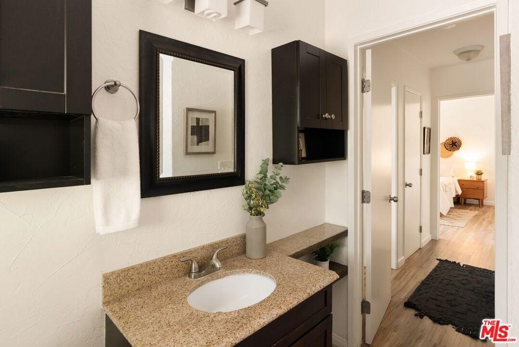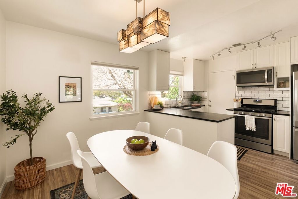 Top-floor 2-bedroom, 1.5-bathroom condominium lovingly upgraded by an owner who paid attention to detail. The elevated interior features include rigid-core luxury vinyl plank flooring laid over acoustic-insulating cork, double-hung dual-pane windows with custom treatments, and solid wood interior doors, all of which maximize durability and create a quiet, relaxing atmosphere. The kitchen was renovated with chic Caesarstone countertops, a matching subway tile backsplash, soft-close cabinetry, sleek stainless-steel appliances, and water filtration systems for both the kitchen sink and the automated ice machine. Recessed and dimmable lighting throughout further add to the premium feel of the unit. Both bedrooms are spacious, private retreats. Oversized closets with sliding mirror doors and whisper-quiet Casablanca ceiling fans ensure year-round comfort. The in-unit washer and dryer, central heat, and a private one-car garage with built-in storage cabinets provide ultimate convenience. Residents also benefit from an additional parking space in the common area and plenty of on-site parking for guests. The condo sits within Cameo Woods, a 24/7 guard-gated community providing resort-style living. This is one of the best-positioned units in the complex, centrally located away from the noise of any public streets. The top-floor elevation allows in excellent natural lighting. Picturesque views of mature trees and grassy courtyards from every room enhance the sense of peace and tranquility that other units simply do not provide. Life within this community feels like living in a private park, with over 20 acres of landscaped grounds to enjoy. Amenities include a pool, two hot tubs, a tennis court, a dog run, a community garden and a clubhouse. This home offers easy access to Downtown Culver City, West Adams, Downtown LA, LAX, local beaches, the Baldwin Hills Scenic Overlook, Kenneth Hahn Park, and the Expo Line, making it an ideal choice for those seeking a move-in ready home in a vibrant neighborhood.3641 Kalsman Dr Unit 4 -the best value condo in West LA!