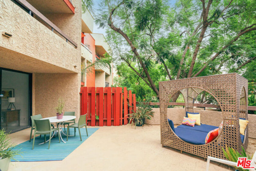 Tucked inside one of Monterey Hills' most coveted communities, 3961 Via Marisol #112 seamlessly blends the ease and comfort of condo living with the magic of an enchanting private garden retreat--a rare indoor/outdoor living opportunity in the heart of Northeast LA! Past the building's secure entrance, enter your unit and find a well-appointed home that has been updated with modern convenience in mind. The spacious open floor plan features a kitchen updated with newer stainless steel appliances, quartz countertops, farmhouse sink, garbage disposal, and flooring, as well as a dining area and an enormous walk-in closet that can be used as a small office space (the current owners lovingly called it the "cloffice"). But this unit also has a secret that sets it apart from the rest: off of the living room, find a massive private patio--almost 500 square feet!--surrounded by towering trees and lush greenery that creates a sense of privacy and calm. Enjoy morning coffee gazing out on mature heirloom rose bushes cultivated from Huntington Gardens varieties, or enjoy a good book while lounging in the comfy and stylish cabana daybed. The home also features two generously sized bedrooms with ample closet space, two bathrooms (including an ensuite) and additional updates including a newer high-efficiency HVAC system and Nest thermostat, in-unit washer/dryer, and a roomy storage shed for larger items. The building is among the most desirable in Monterey Hills, with comparatively low HOA dues that include earthquake and fire insurance, water, trash, sewer, responsive management with on-site caretaker, an exercise room, and a sparkling pool and spa. Two gated tandem parking spaces round out this exceptional opportunity--a secret garden sanctuary that proves homeownership in Los Angeles can be as attainable as it is extraordinary.