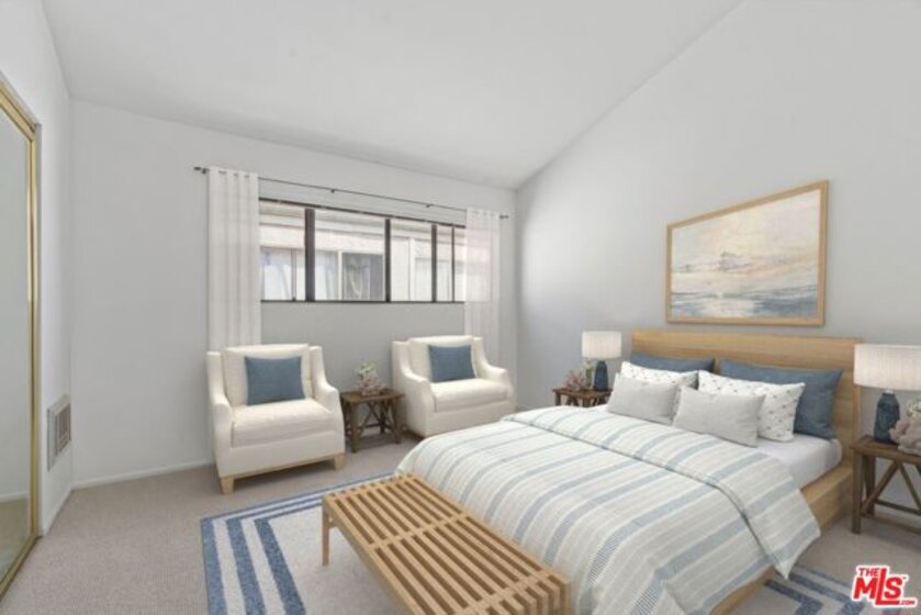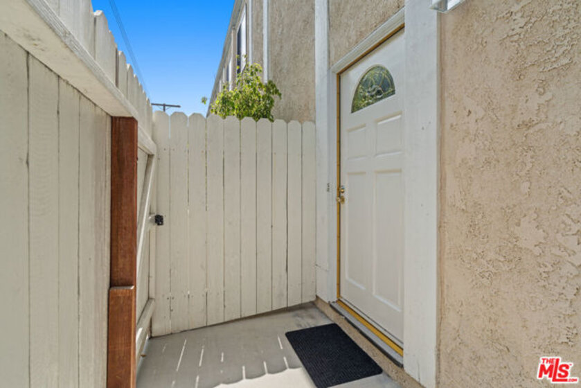 A Thoughtful Refuge on Inglewood Boulevard. Nestled behind a private gate and leafy green entrance, this bright and inviting Townhome offers more than a place to reside; it offers a setting for reflection and a life well lived. With two levels of clean design, the residence invites one to dwell in quietude while still being connected to the vital hum of Westside living. Step inside a living space where light lingers across clean, white walls with recessed lighting and golden-hued plank flooring. A breakfast bar unites kitchen and living room, and the galley kitchen offers crisp white cabinetry with new dishwasher and microwave, plus a gas range for cooking up memories. Upstairs, find sanctuary in two generous bedrooms, each offering the tranquility of natural light, ample mirrored closets, and vaulted ceilings. The two baths are clean-lined and efficient, featuring new vanities, wall storage, a sliding-glass shower, and bathtub. Downstairs, a private entryway, tiled foyer, and tiled gas fireplace welcome you home with intention. The private porch is perfect for plants and contemplation, and the sunny gated parking area with extra storage shed brings practical comfort to match the flow. This home also has AC & parking. The building has been retrofitted and the entire foundation reinforced, with new planters housing delicate trees. Located in a secure, well-kept complex and minutes from the beach, the Marina, Culver City, and LMU -- this home is a vessel for the life of the mind and heart. Whether you're penning a manuscript or savoring the ordinary rhythms of the day, this is a place to be both still and inspired.