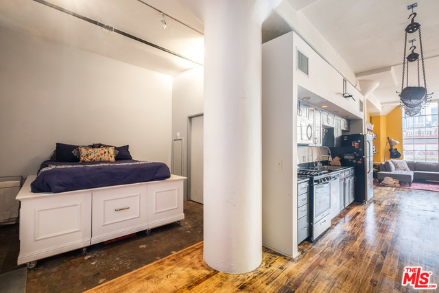 Ooh-la-la a loft with a skyline view! True loft living in Downtown LA with personalized designer finishes. The Little Tokyo Lofts is a historical building. Originally the Westinghouse Electric Company in the Toy District, now converted to loft residences. The spacious floor plan features a bedroom alcove, 12 ft. ceilings and hardwood floors adding sophistication to the industrial concrete feel of the building. Light filled loft from the oversized casement windows allowing plenty of natural light to abound. Watch the sun go down against the city skyline from the comfort of your living room. Customized built in book shelves made of reclaimed wood. All stainless steel appliances. TWO parking space in the off street gated structure, plus 25 visitor spaces. Great common grounds: open air lounge patio, heated pool and hot tub,barbecue area, gym and dog run. 24 hour gated security. Adjacent to Little Tokyo, Arts District and Gallery Row.
