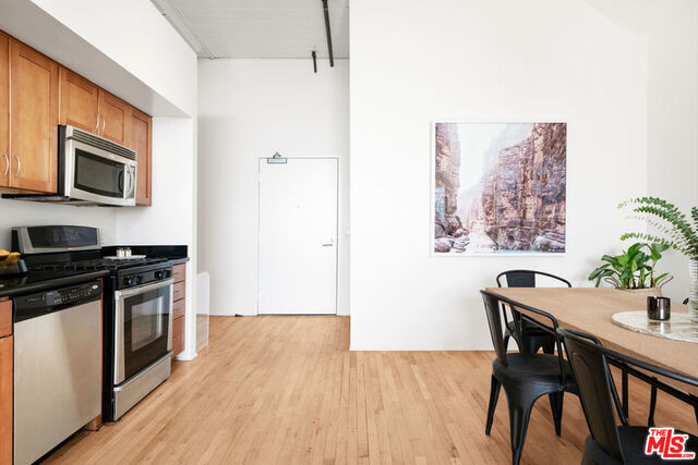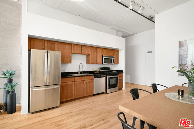 Stunning 1 bedroom + 1 bathroom live/work loft at Little Tokyo Lofts. This light-filled southwest facing unit offers incredible views, beautiful new hardwood floors, original large steel casement windows, soaring ceilings, modern kitchen with stainless steel appliances, central HVAC, separate bedroom with spacious walk-in closet, and washer/dryer inside of the unit. The building features 24 hour on-site security, outdoor heated pool/spa, BBQ area, gym, garden courtyard, and ample gated and covered guest parking. Located in the heart of Downtown LA, close to Little Tokyo, the Arts District, the Metro Rail, and some of the best shops, restaurants, bars, and markets that DTLA has to offer. Downtown LA living at its best.
