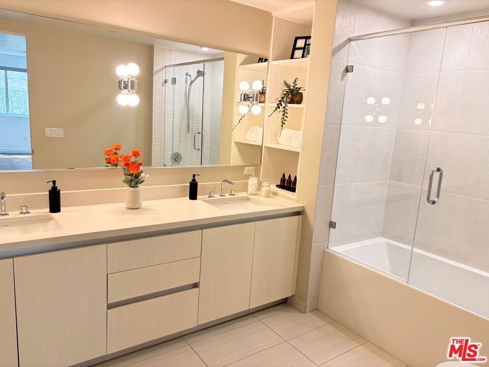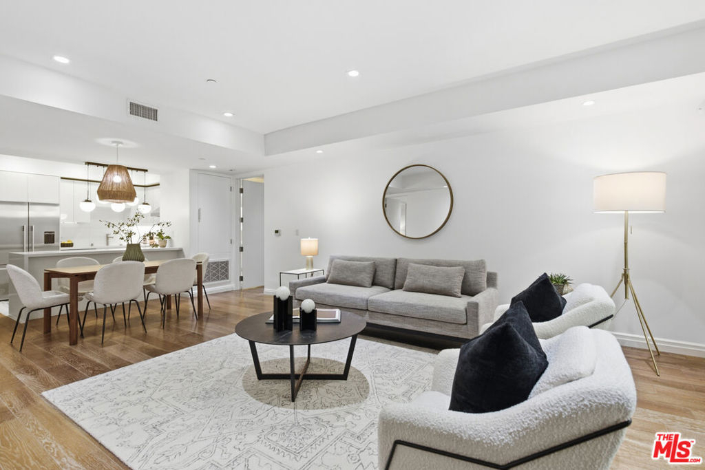 This contemporary two-bedroom, two-and-a-half-bath residence is located in one of Brentwood's premier full-service buildings. The open living and dining area features wide-plank wood floors, modern finishes, and a guest powder room. The kitchen is equipped with high-end appliances and sleek cabinetry. Both bedrooms include en-suite baths, with the primary offering dual vanities and a walk-in closet. Additional features include in-unit laundry, secure two-car parking, and private storage. Building amenities include 24-hour concierge, fitness center, heated pool, outdoor lounge with fire pit, meditation garden, EV charging, and guest parking. Prime location near Brentwood Village, dining, shops, and parks