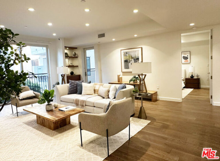 Situated on the second floor of The Cosmopolitan Brentwood, this 2-bedroom, 2.5-bath residence offers a sophisticated blend of quality, comfort, and elevated services in one of Brentwood's rare premier full-service buildings. The open living and dining area is finished with wide-plank wood floors and clean, contemporary details as well as a guest bathroom. The well-appointed kitchen features Fisher & Paykel and Bosch appliances, a Wolf range/oven, sleek cabinetry, and generous workspace. Both bedrooms include en-suite baths, with the primary suite offering dual vanities and a walk-in closet. Additional highlights include in-unit laundry, secure 2 car tandem parking and private storage. Residents enjoy a comprehensive amenity collection, including 24/7 concierge and security service, controlled access, a modern fitness center, outdoor lounge with fire pit, meditation garden, EV charging, and ample guest parking. Positioned within moments of Brentwood's acclaimed dining, cafes, grocery stores, boutique fitness studios, parks and Brentwood Village, this home delivers refined living in an exceptionally convenient Westside setting.