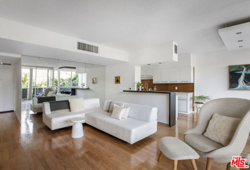 [sol-id] A delightful word w/ MANY different potential uses. Like helping define genuine, not superficial character: "she's solid." Sometimes, to describe durability & style: "it's a solid blend." Often, used as a favor or kind gesture: "thanks for doing me a solid." Songwriters Ashford & Simpson even used the word as title to their iconic hit song: Solid (as A Rock)! Our world is fairly unpredictable these days -imagine coming home to this soothing Los Feliz Towers 1BR/1BA that is SOLID in every way: location, reputation, security, durability, style, practicality, affordability, and so much more? Terrific third floor home is not too high, not too low: SOLID. Enter and instantly be greeted by beautiful, warm oak floors: SOLID. Open floor plan with separate dining area + chic overhead lighting island: SOLID. Galley kitchen ideally created featuring open flow, breakfast bar, granite counters, designer cabinets & hardware + deep basin sink w/ premium nickel faucets: SOLID. Floor to ceiling sliding glass doors (opening to comfortable balcony) touch green treetops while providing lovely natural light AND privacy: SOLID. Bedroom boasts terrific closets + yummy built-in dresser drawers; bathroom has everything needed: glass shower + soaking tub + bright and light lines. SOLID and SOLID. Popular building amenities include heated pool, outdoor dining areas, sun deck, 2 saunas, gym + 24/7 doorman all SOLID. Go ahead -- embrace your inner SOLID.