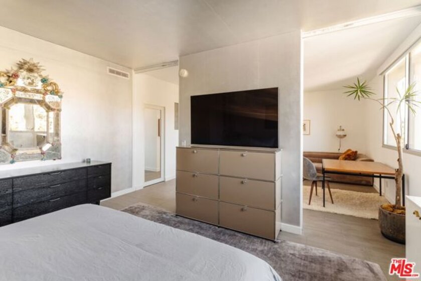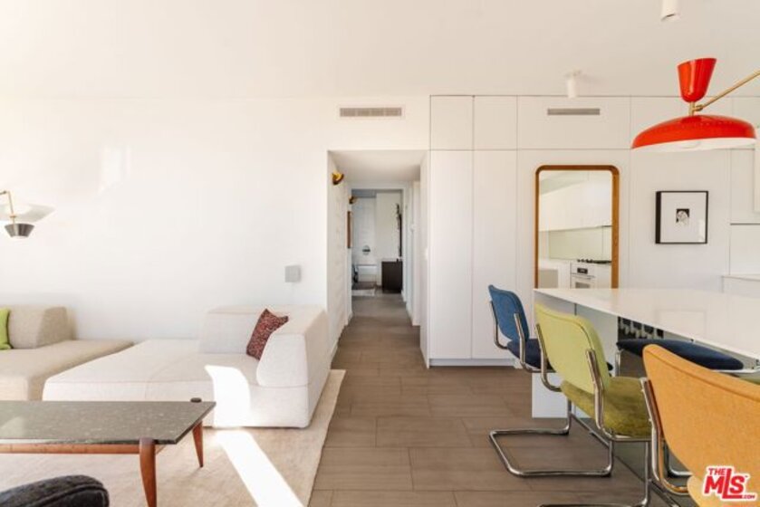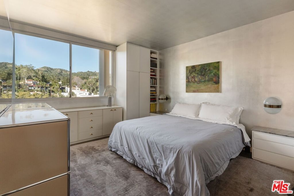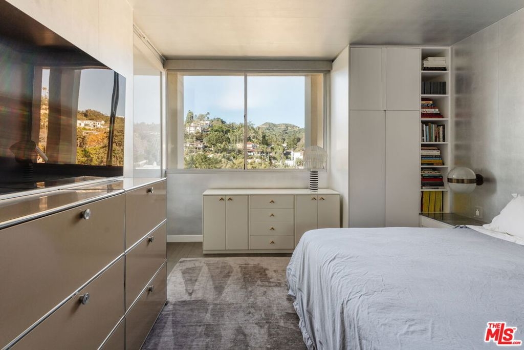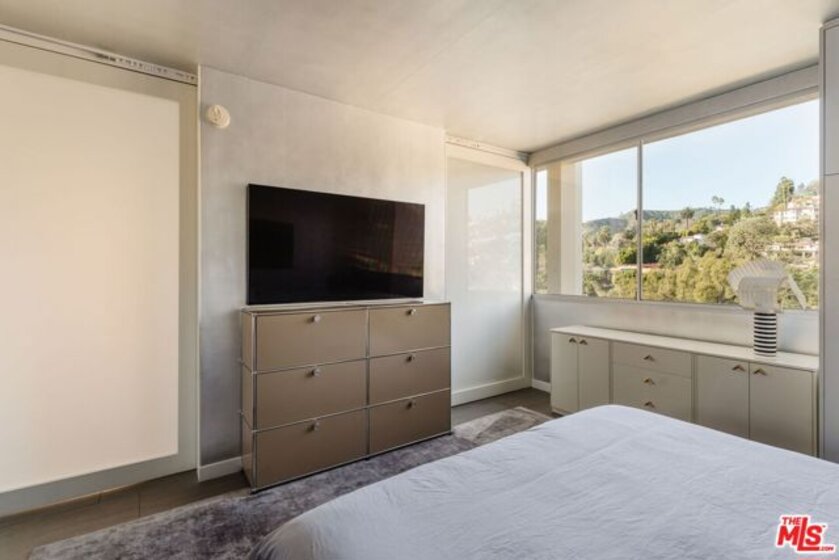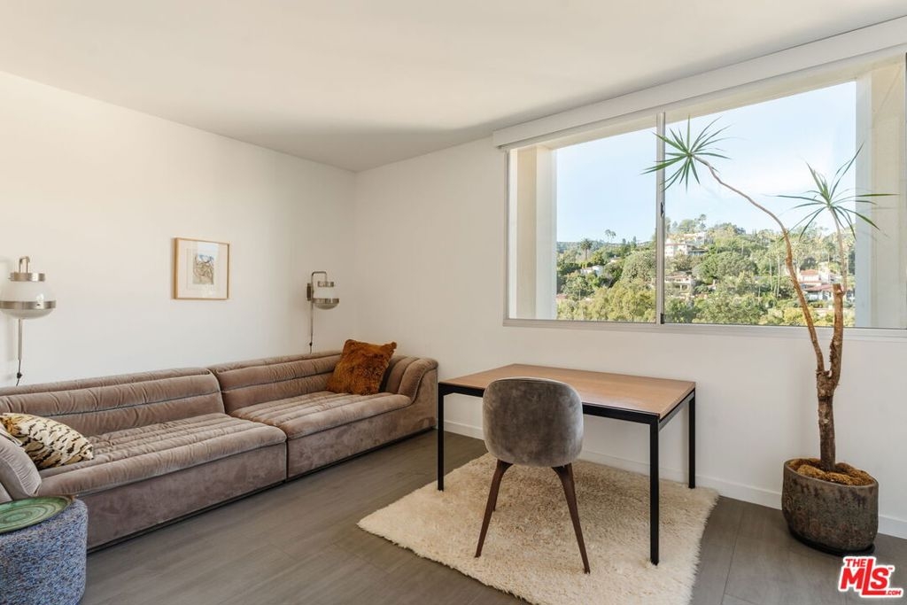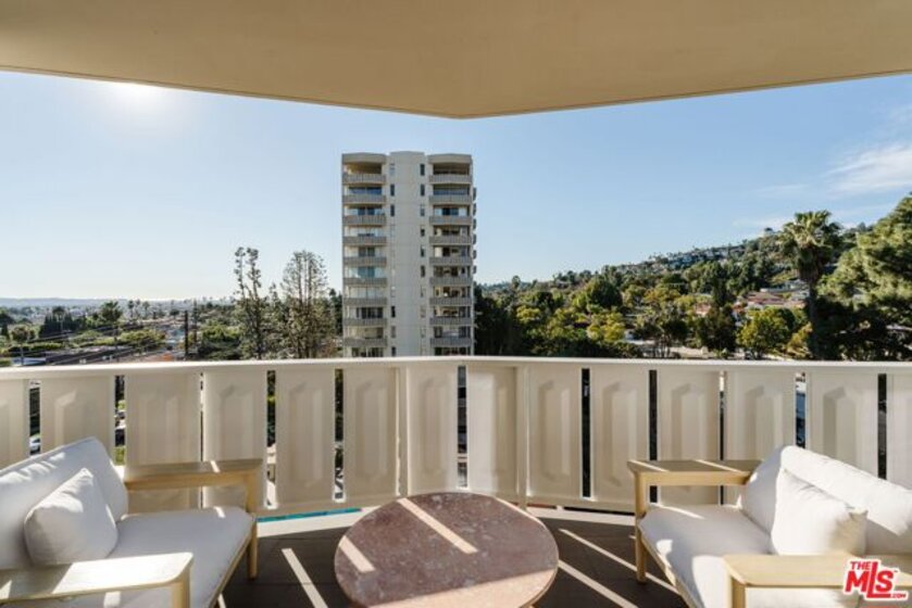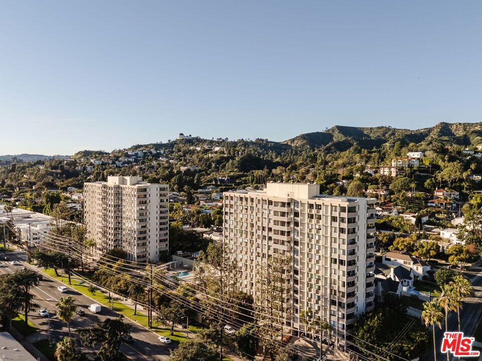 The iconic Los Feliz Towers. This rare northwest corner unit offers a rare expression of modernist simplicity and elevated city living. Designed to celebrate light, clean lines, and uninterrupted vistas, the home creates a seamless dialogue between indoors and out. From sunrise over the Los Feliz Hills to golden-hour views of Griffith Observatory, every moment feels cinematic. Floor-to-ceiling Arcadia glass doors extend the living space onto a wraparound terrace overlooking lush gardens and the heated pool. The kitchen combines elegance and function, with a center island concealing a refrigerator, freezer, and wine fridge, while a wall of minimalist wood cabinetry provides storage and adds warmth and refinement. In the bedroom, a floating center wall cleverly conceals frosted-glass pocket doors that close for privacy or retract for openness. A versatile den adapts effortlessly to your lifestyle - ideal as a home office, library, media lounge, or guest retreat. The spa-inspired bathroom is a serene sanctuary, complete with a Kohler soaking tub, dual sinks, a separate shower, and custom cabinetry. Renovated with meticulous attention to detail, the home offers radiant heated floors, soundproofed walls and ceilings, and fully updated electrical, plumbing, and HVAC systems. As Los Feliz's only full-service high-rise, the Towers provide 24-hour security, doorman service, a pool, fitness center with sauna, and a clubhouse. All just steps from beloved neighborhood favorites like Little Dom's, Messhall Kitchen, and Blue Bottle Coffee. The ultimate Los Feliz residence, where design, luxury, and lifestyle converge.