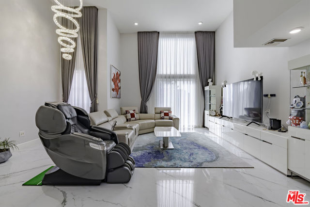 Remarkable !! Incredible !!. Experience LUXURY modern living in this stunning and gorgeously remodeled PENTHOUSE in prime Hancock Park & THIRD SCHOOL DISTRICT. Elevator access opens DIRECTLY INTO THE UNIT, where you'll be led into its breathtaking living room with soaring 18ft ceilings, custom built architectural fireplace, & plenty of natural light. 3 extra large bedrooms all conveniently located on the SINGLE floor, giving you & your family tons of spacious room. The loft is perfect for entertaining or as an office/additional bedroom. Enjoy sweeping views across the treetops of LA from 3 large balconies & ROOFTOP sundeck with a clear view of the Hollywood sign from the master bedroom. Remarkably renovated w/ imported Italian ceramic tiles, hardwood flooring, custom built-in cabinets, floor-to-ceiling drapes, hanging pendant lights by classic mid-century designer George Nelson. Also features ample in-home storage, a PRIVATE STORAGE ROOM in the garage.