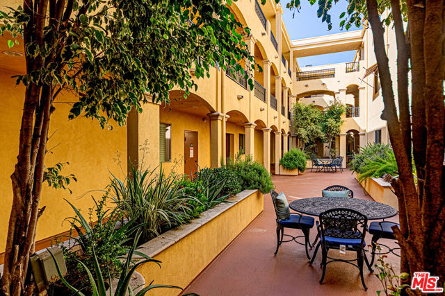 Stunning top-floor 2bed/2bath Spanish-style condo built in 2008!! Located near Hancock Park & Larchmont Village, this turnkey home features an open floor plan, soaring ceilings, and abundant natural light. The chef's kitchen offers a skylight, granite counters, and stainless steel appliances, flowing into the dining and living areas with a private balcony and cozy fireplace. The spacious master suite includes a walk-in closet, two extra wardrobes, and a luxurious bath with soaking tub. Additional highlights: rustic maple hardwood floors, in-unit laundry, and secured 2-car parking with guest spaces. Meticulously maintained in a quality building. HOA covers water, trash, landscaping & common areas. Don't miss this rare opportunity-this condo will not last!