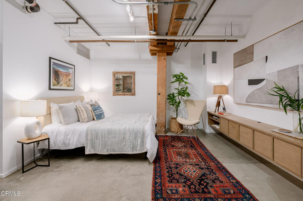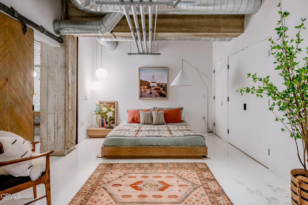 An exceptional two-level loft with a private patio, is now available at the Barker Block. Custom designed upgrades with high quality and abundant of details, take this industrial loft living to the next level. Solid floating oak shelves and cabinetry throughout the unit, lining the walls of the living room on the main level, anchor inside a spacious custom-built wardrobe, floating in the master bath wrap around vanity. An entire floor of master retreat encompasses a second living room, bedroom enclosed with reclaimed wood barn doors, oversized bathroom with an expansive shower, multiple seamless designed storage rooms with lighting, for laundry, linen or whatever you desire. Industrial hardware, brass wall mounted faucets, vintage handmade brass pendant lights, all delectably creating a sanctuary with style and elegance! Amenities include a newly renovated resort style roof top, equipped with pool, spa, firepits, cabanas, BBQ, and a fitness center, complete this swanky urban living with luxury. Proximity to countless popular eateries: Bavel, Bestia, and the soon to open Girl and the Goat; coffee houses: Blue Bottle and Verve; museums and galleries such as Hauser and Wirth; neighbors with big names likes the SoHo House, Warner Brothers, Spotify, Honey, just to name a few, right across from the Arts District park, and a quick hop onto all major FWYs, metro and train stations. Experience a vibrant living in the famed Arts District of Downtown LA.
