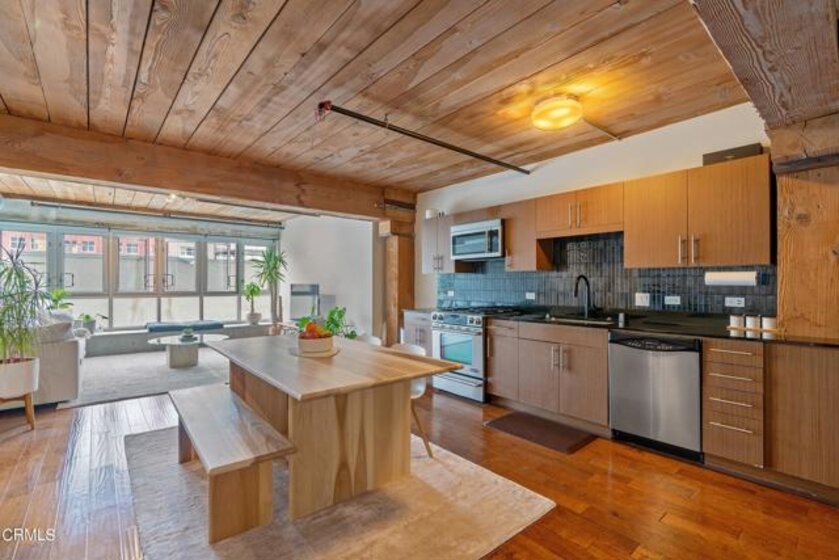 Welcome to unit 218 at Barker Block, an iconic highly sought-after community in the heart of the Arts District. Entering the spacious 1,030 square foot unit you'll be greeted by an open and inviting floor plan with natural light streaming through expansive windows, highlighting the exquisite industrial design elements. The modern kitchen offers black quartz countertops and stainless steel appliances, including a gas range, refrigerator, dishwasher, and microwave. Residents will enjoy the convenience of in-unit laundry and one assigned parking space. The building amenities are abundant, encompassing a newly renovated rooftop with views of the Downtown L.A. skyline, a pool, gym, barbecue area, fire pits, cabanas, additional outdoor courtyards and 24 hour security. Experience the Arts District living at its finest--Coffee roasters, LA's top gourmet restaurants, breweries, entertainment and galleries just moments away.