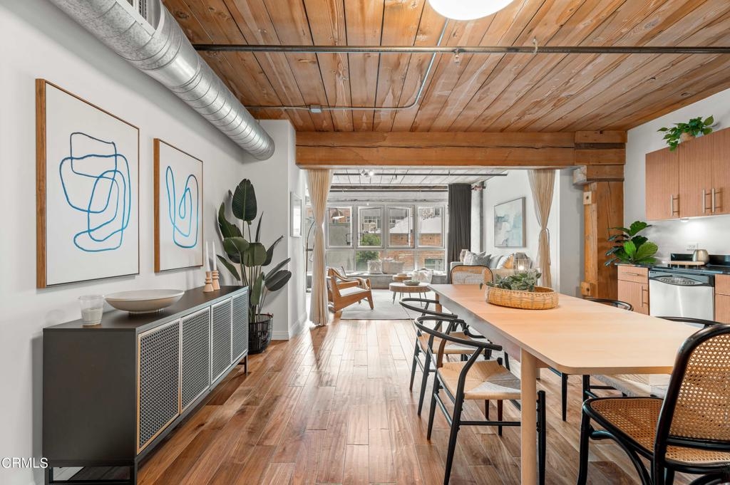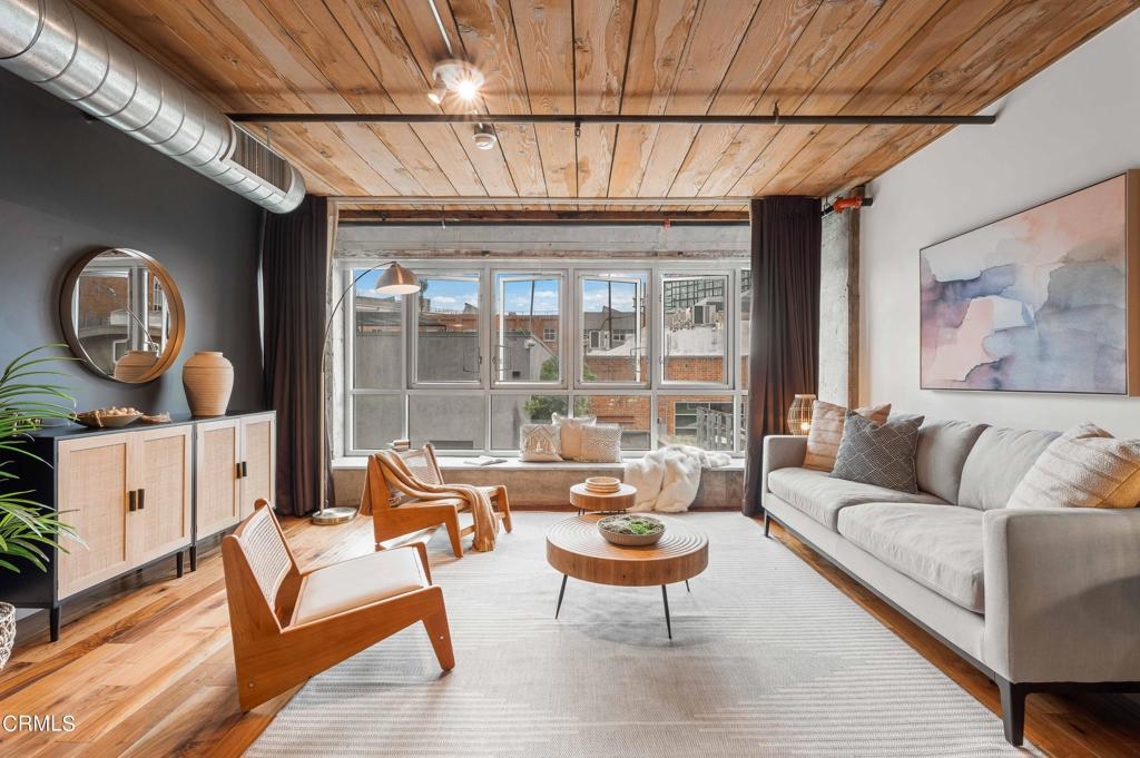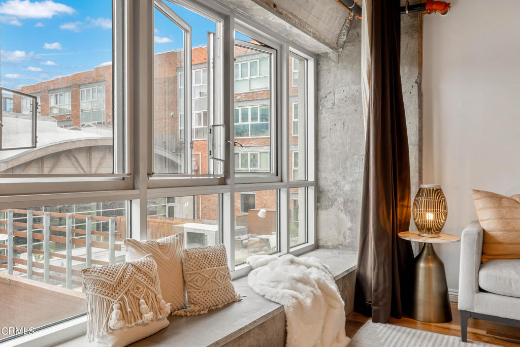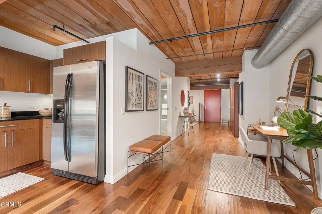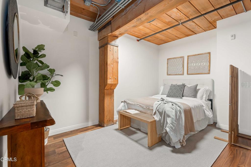 A cozy and tranquil unit, rich with industrial elements that make Barker Block distinctive! Begin your tour under this open-style loft's original 1920s wood beam ceilings, exposed wood posts, and newer wood floors. Concrete framed floor-to-ceiling walls of double-paned windows bring in natural sunlight. Spacious bathroom offers room for cabinets, oversized soaking tub, and inside laundry. Gallery kitchen with S/S appliances, and ample counter space. One covered and designated parking space in a gated garage and on-site 24/7 security. Other amenities include a recently modernized resort-style rooftop, equipped with a heated pool, spa, BBQs, cabanas, fire pits, fitness center, and 360 degrees of spectacular views of the horizon, completing this swanky urban living with luxury. Proximity to countless popular eateries (Bavel, Girl & the Goat, Manuela), coffee houses (Verve, Blue Bottle, Urth), museums and galleries (Hauser & Wirth and more), and The Arts District Park. Prominent neighbors such as The SoHo House, Warner Brothers, and Spotify, to name a few. Conveniently located just minutes away from metro and train stations, and a quick hop onto all major Freeways. Come and experience vibrant living in the famed Arts District of downtown LA.