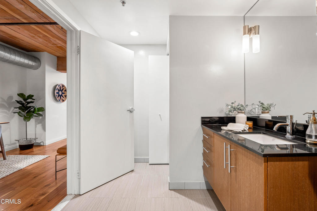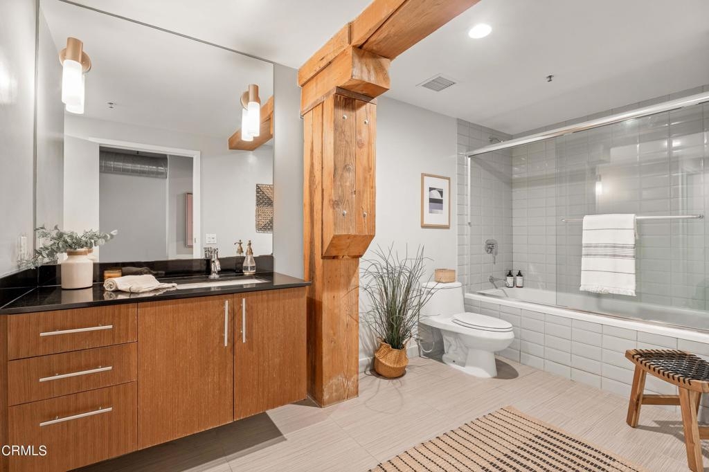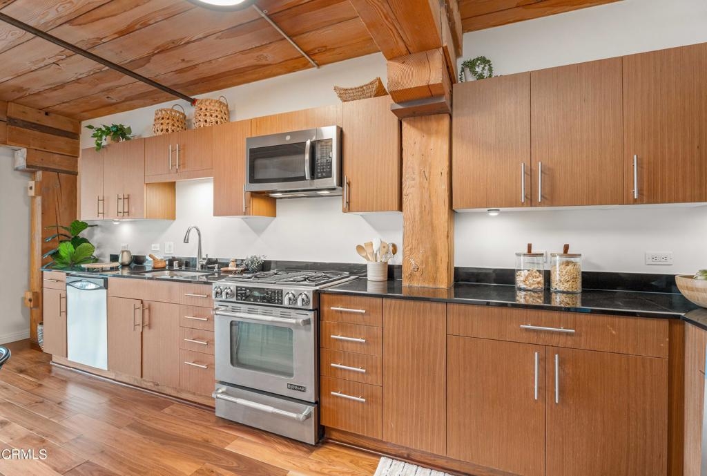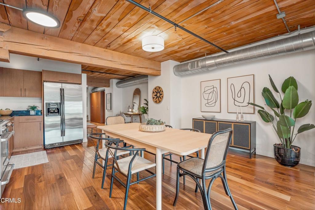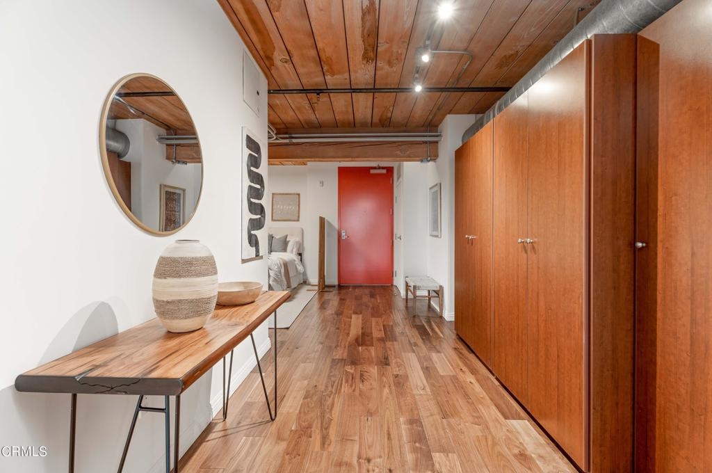A cozy and tranquil unit, rich with industrial elements that make Barker Block distinctive! Begin your tour under this open-style loft's original 1920s wood beam ceilings, exposed wood posts, and newer wood floors. Concrete framed floor-to-ceiling walls of double-paned windows bring in natural sunlight. Spacious bathroom offers room for cabinets, oversized soaking tub, and inside laundry. Gallery kitchen with S/S appliances, and ample counter space. One covered and designated parking space in a gated garage and on-site 24/7 security. Other amenities include a recently modernized resort-style rooftop, equipped with a heated pool, spa, BBQs, cabanas, fire pits, fitness center, and 360 degrees of spectacular views of the horizon, completing this swanky urban living with luxury. Proximity to countless popular eateries (Bavel, Girl & the Goat, Manuela), coffee houses (Verve, Blue Bottle, Urth), museums and galleries (Hauser & Wirth and more), and The Arts District Park. Prominent neighbors such as The SoHo House, Warner Brothers, and Spotify, to name a few. Conveniently located just minutes away from metro and train stations, and a quick hop onto all major Freeways. Come and experience vibrant living in the famed Arts District of downtown LA.