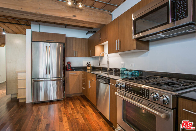 Expansive loft with open floor plan in the Arts District development, Barker Block. Hardwood floors, designer tile, stainless steel appliances, and in-unit washer and dryer. Built-in shelving and closets make loft living a breeze. Exposed wood ceilings and wall-to wall-windows bring warmth and natural light throughout the residence. In the heart of Downtown Los Angeles' Arts District, the Barker Block exemplifies luxury loft living with unparalleled amenities and common areas that look like something in a magazine. Spend the day sitting poolside in a cabana overlooking downtown or enjoy a bottle of wine on the rooftop next to the fire. Be inspired while working out in the gym overlooking the sprawling cityscape. Minutes from Urth Caffe, Bestia, Stumptown, Blue Bottle, Zinc Cafe, and many more shops and restaurants. Barker Block is private and secure building with 24-hour security and attached gated parking garage.