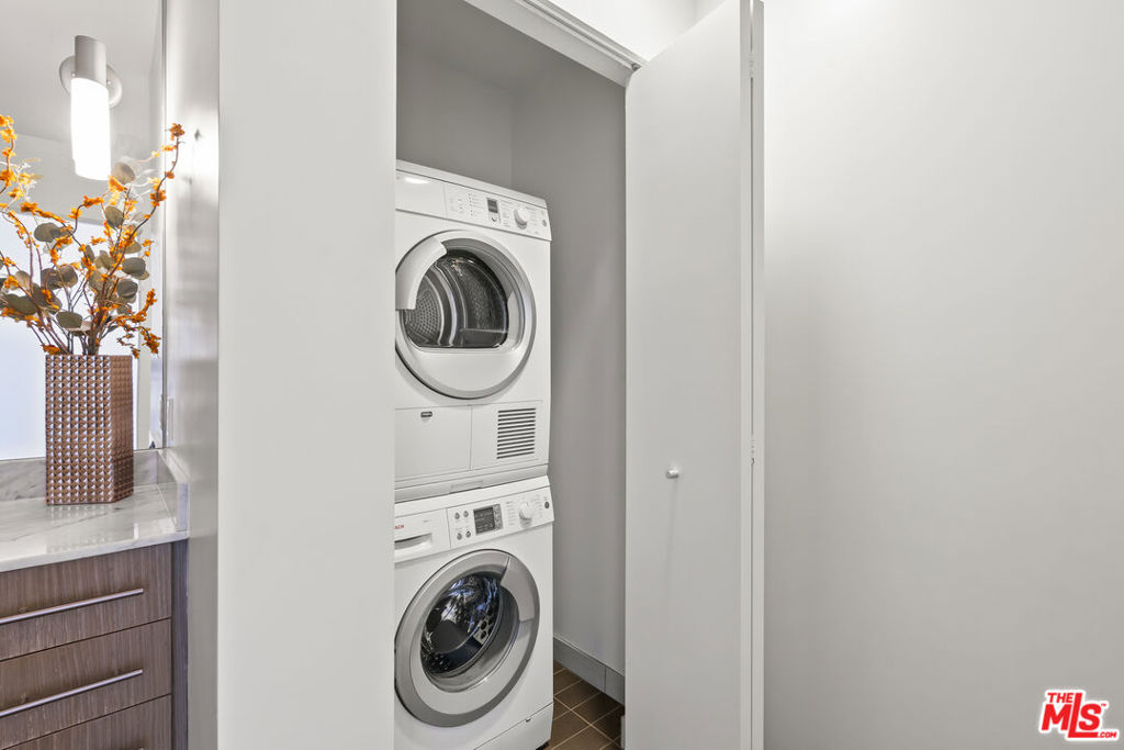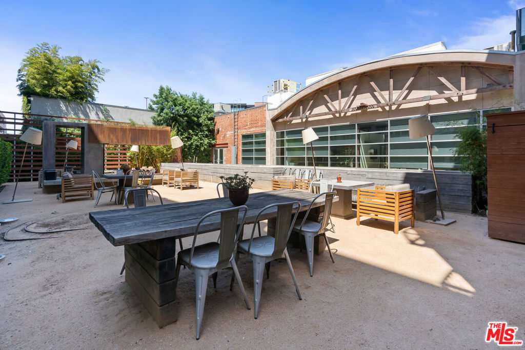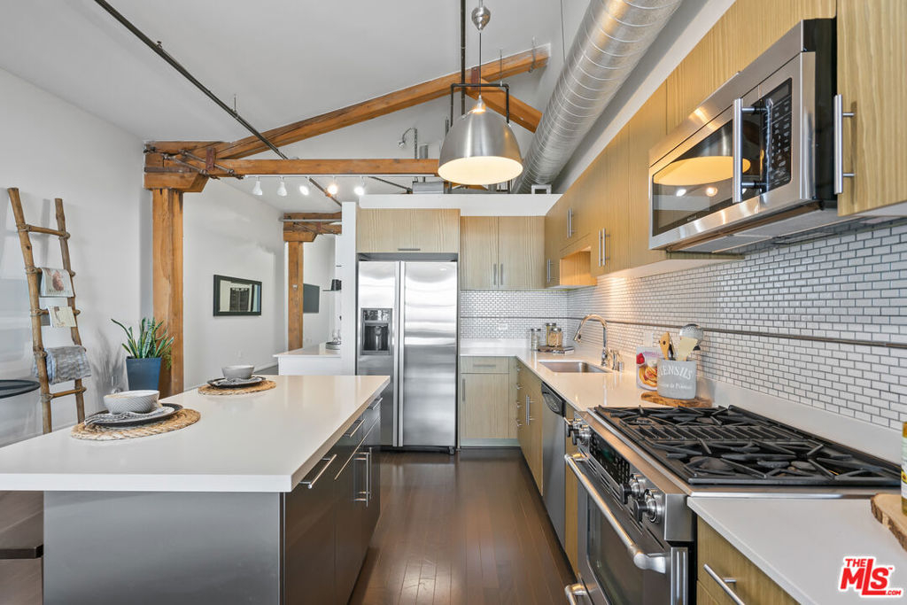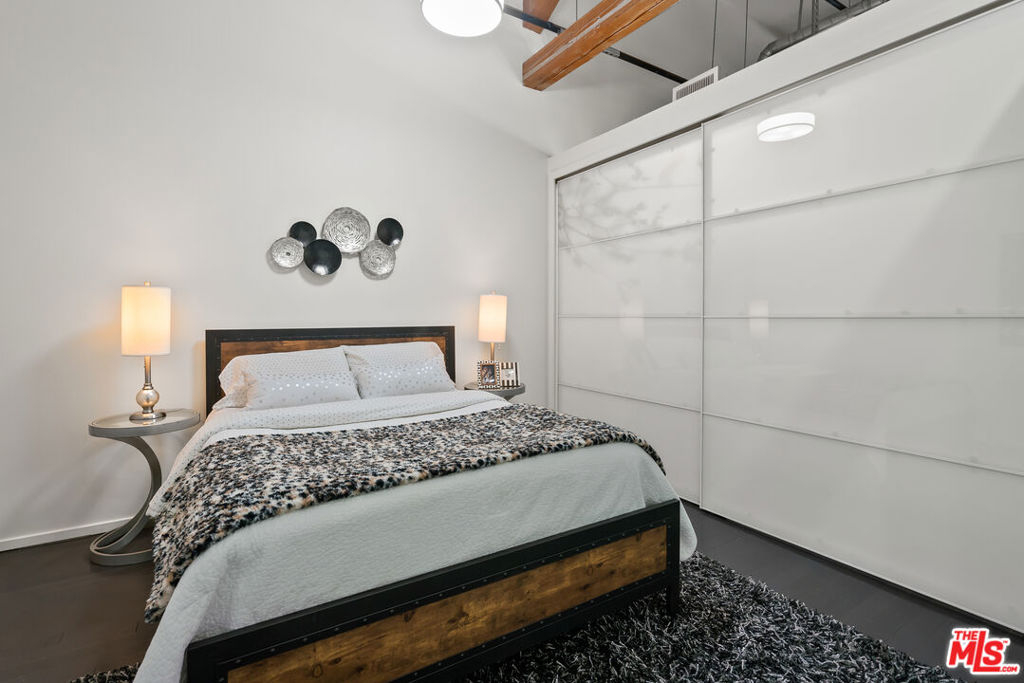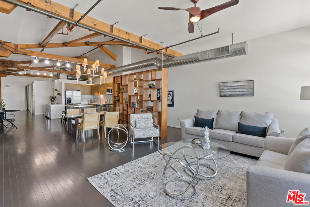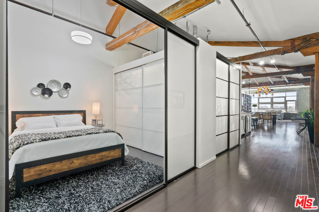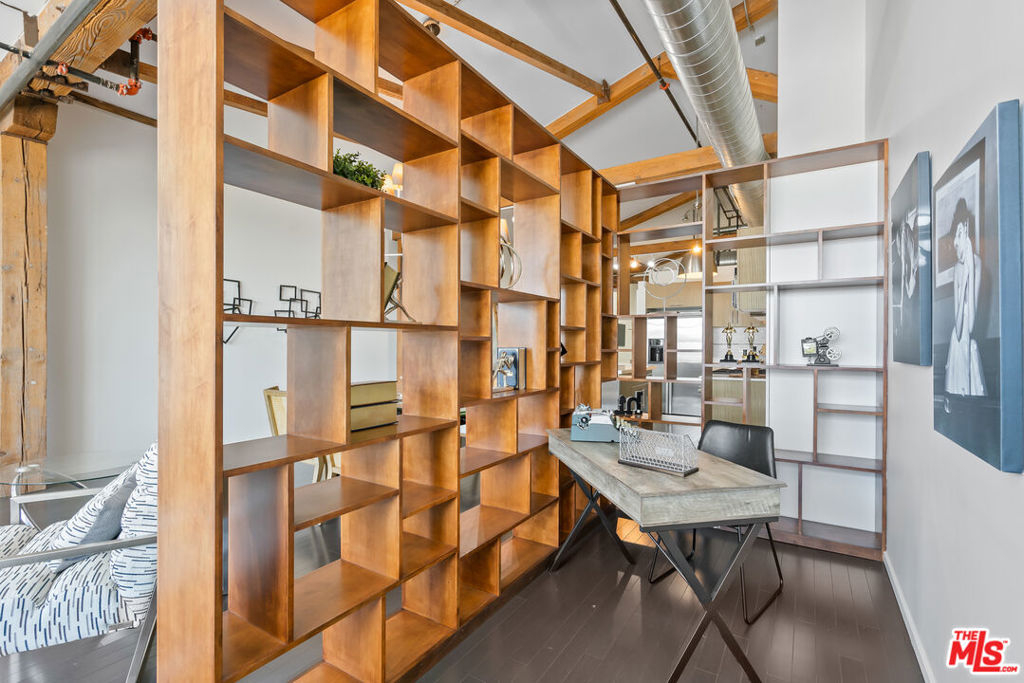Top floor penthouse unit in Barker Block. Dramatic vaulted ceilings, floor to ceiling windows with an abundance of light, and open concept living space. Enjoy city views in this entertainer's dream condo. Upgraded with an enclosed bedroom, separate office space, two large closets, and wood floors throughout. The kitchen boasts a large island, stainless appliances, and high end cabinetry. In unit washer and dryer. Amazing Arts District location with every resort amenity you could hope for including rooftop pool, spa, fireplace/firepit, fitness center, and more. Across from Urth Caffe and the Arts District Park.