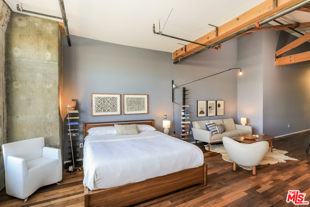 Stunning TOP FLOOR loft in the heart of the Arts District. Beautiful high ceilings with exposed timbers lead your eye out to the view of snowcapped San Gabriel Mountains. The loft features huge windows, custom shades, hardwood floors, bathroom with private laundry closet, and a modern kitchen. The HOA recently completed a beautiful renovation of the rooftop pool and activity deck, offering spectacular views of the downtown Los Angeles skyline. Plenty of private cabanas grills, and a hot tub complete the outside portion, while you can enjoy the same view from the rooftop gym. The building has 24 hour security and card access. Parking is a breeze, with your space on the top floor of the attached parking deck as well.