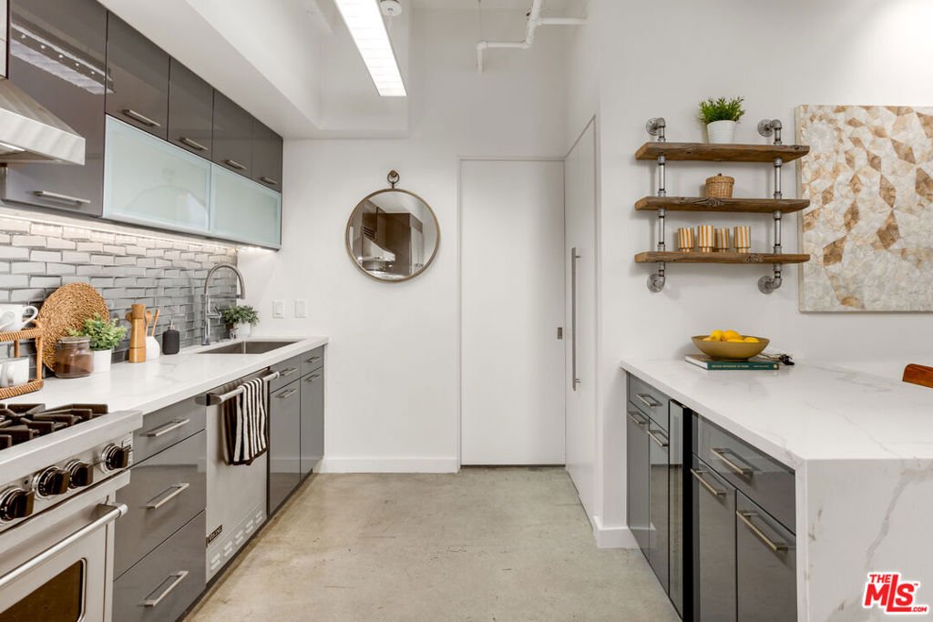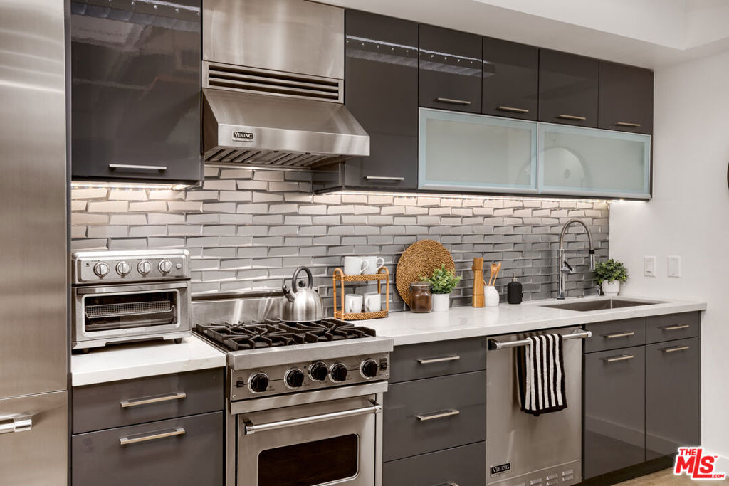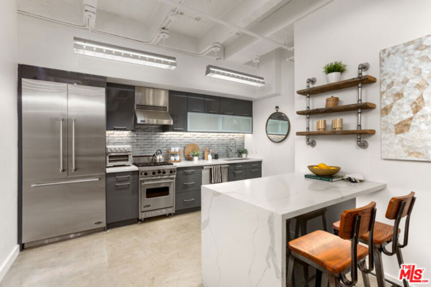 Experience a beautifully upgraded two-story residence located at the legendary intersection of Hollywood & Vine. Designed with both form and function in mind, the layout offers a true separation between the main living spaces and the private bedroom level ideal for entertaining, working from home, or simply enjoying a more defined living experience. The main level features an open-concept living, dining, and kitchen layout anchored by a recently updated kitchen with a striking waterfall peninsula island, built-in wine cooler, and Viking appliances. Custom built-in shelving, architect-designed details, and thoughtful suspended accents preserve the industrial character of the space while adding warmth and livability. A convenient powder room and tucked-away washer/dryer combo complete this level. Upstairs, a spacious loft-style bedroom retreat offers privacy and flexibility, paired with a full bathroom and additional space for a home office, lounge, or creative studio all while maintaining the open, architectural feel that defines this unique home. Located in the prestigious Lofts at Hollywood & Vine a historic 1929 Mills Act building residents enjoy meaningful property tax savings along with full-service amenities including 24-hour security, valet parking, doorman service, and an expansive rooftop deck with BBQ and panoramic city views. The seller is also open to offering the home partially furnished for added convenience. Step outside and you're moments from some of Hollywood's best dining, entertainment, fitness, and nightlife, including the W Hotel, Pantages Theatre, Equinox, Barry's Bootcamp, and Trader Joe's, with the Metro Red Line just across the street providing easy access to Downtown LA and beyond. A rare opportunity to own a distinctive residence in one of Los Angeles' most iconic locations.
