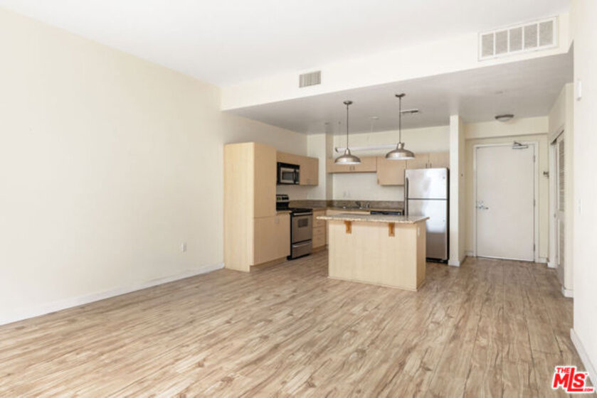In the heart of Downtown LA, this bright one-bedroom condo at Library Court puts you close to museums and parks, with the Financial District at your doorstep and no commute required. The open layout feels spacious with high ceilings, wood flooring, and oversized windows framing views of tree-lined Sixth Street. The kitchen is finished with stainless appliances, blond cabinetry, and generous counter space. An enclosed bedroom provides privacy with room for a desk or larger furnishings; the bathroom includes a ceramic tiled floor and ample storage. Conveniences include in-unit laundry, central air, and a deeded parking space. Community amenities feature a zen garden, lounge, and a recently renovated gym. You're just minutes from Grand Central Market, MOCA, The Broad, and Crypto Arena, with Whole Foods, Spring Street Park, Pershing Square, and Little Tokyo all within easy reach, plus endless nightlife and shopping right outside your door.
