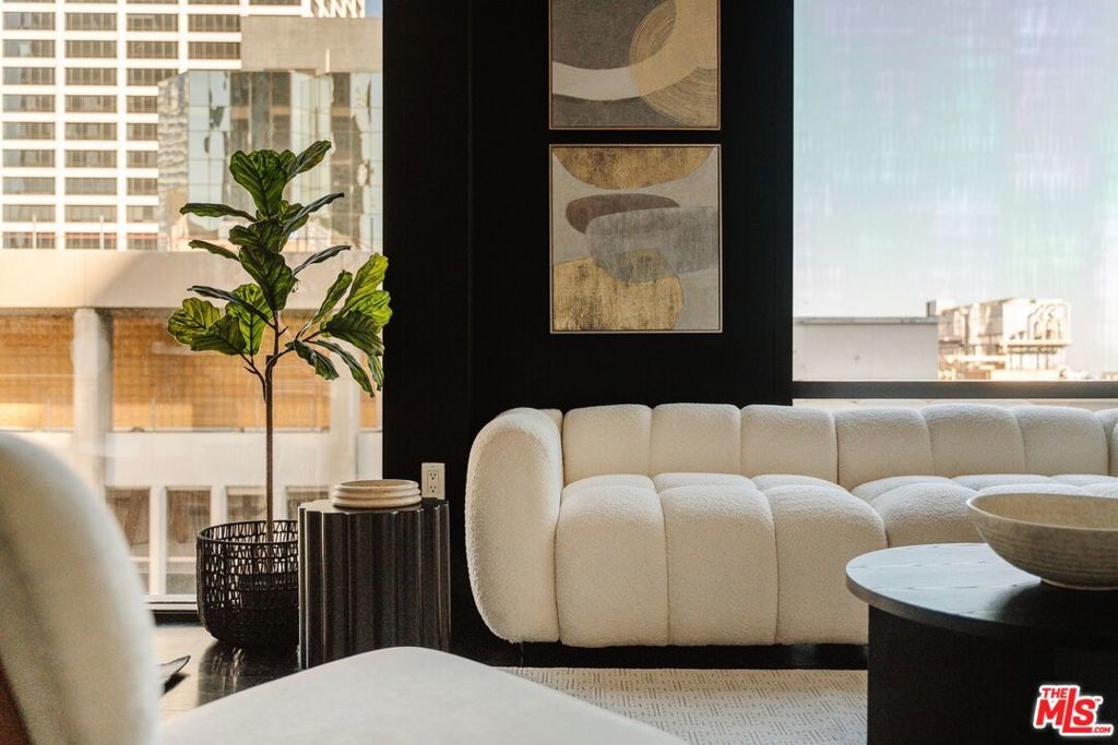 Nestled high on the 14th floor, the highly desirable end unit is a harmonious blend of modern elegance and urban sophistication. True urban dwelling with views of the bustling city down below. The open floor plan loft boasts floor-to-ceiling glass walls, tall gallery walls, 12-foot ceilings and warm dark hardwood floors. 2 unique brick accent walls and an East facing wall painted black. Natural light emanates throughout. The sleek kitchen features blue color cabinetry, white backsplash, granite countertops, stainless steel appliances and a new Bosch dishwasher. The bathroom features a soaking tub. Washer/dryer are included! 1 unassigned parking space included in the parking garage - exclusive to the Hope Street Lofts, with an elevator bank giving direct access to the 14th floor and the lobby. Hope Street Lofts is a boutique art deco condo building with only 80-units. Building amenities include 24/7 security, front desk concierge, a fitness center, game room, a rooftop with panoramic Downtown views, a helicopter pad, sundeck, barbecue grills and a chic wet bar. The rooftop was recently redone and new furniture has been ordered. Located in the Financial District of Downtown L.A. and directly above the 7th Street Metro Station. Access the best of urban dwelling at your doorsteps! Enjoy the best of food and beverages at the trendy Javiers or Bottega Louie. Near michelin star restaurants, world class museums, concept coffee shops and endless entertainment options. Across the street from the Bloc and Joeys. Only 2 blocks from Whole Foods and the Broad Museum is a stone's throw away. Experience a night at the LA Opera or a concert at the Walt Disney Concert Hall - only 4 minutes away. Attend a Lakers game at Crypto Arena. Entertain family and friends at LA Live. Easy access to freeways and public transportation. Truly, the best location in Downtown L.A.