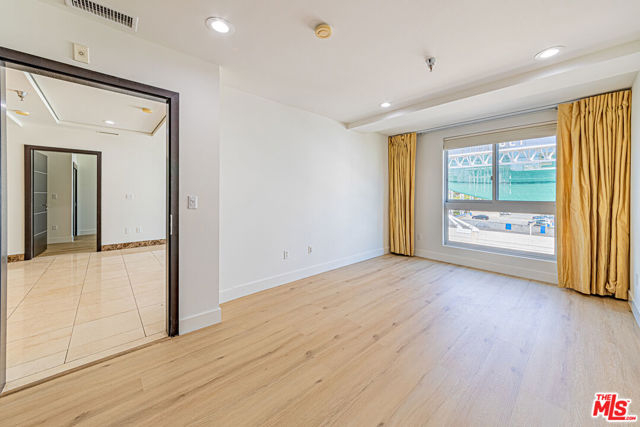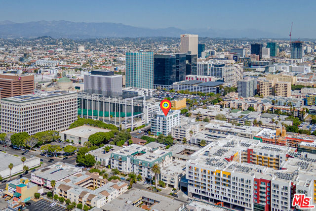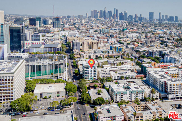 Modern 2 Bed, 2 Bath Condo located in one of Koreatown's most sought-after architectural steel frame building. This RARE and versatile 2-bedroom, 2-bath offers the perfect blend of style and functionality. Whether you're looking for a stylish starter home or a sleek bachelor pad, this unit is designed to suit all your needs. The open floor plan features high ceilings, recessed lighting, and a spacious living area that extends to a large balcony with stunning views. The gourmet kitchen is equipped with granite countertops, light oak contemporary cabinetry, and top-of-the-line Viking and Miele appliances. Luxury vinyl plank flooring and tile flow throughout, adding an elegant touch to the space. The expansive en-suite primary bedroom offers "his and hers" closets, while the second bedroom provides flexibility for guests or office space. Equipped with a large in-unit laundry room with ample storage and two secured parking spaces w/ EV Charger. Nestled in vibrant Koreatown, this condo is steps from banks, Aroma Spa, markets, diverse restaurants, theaters, sports centers, and Metro public transit, providing unmatched convenience. Don't miss out on this rare opportunity to live in one of the most desirable areas of LA!