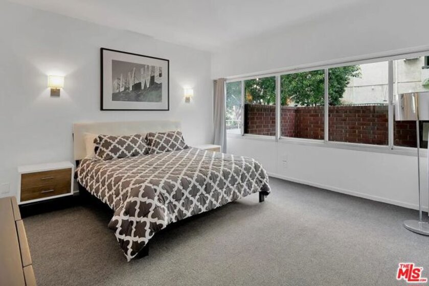 Stunning first-floor condo in the iconic Hollywood Versailles Tower. You'll love this spacious and chic 1 bed, 1 bath home spanning approximately 1,127 sf and enjoying resort-style amenities including doorman, 24-hour valet, swimming pool, sun deck, fitness center, and game room. One of the few units with direct access to the pool, this unit is one-of-a-kind! Enter to an open floorplan streaming with natural light through floor-to-ceiling glass windows, taking you out to an expansive private brick patio perfectly situated for entertaining, pets, and al fresco dining. A chef's kitchen opens to the living area and boasts high-end stainless steel appliances, custom cabinetry, modern stone counters, grey subway tile backsplash, and a dual basin sink. The sumptuous master suite enjoys an attached bath with updated vanity and stacked washer and dryer in the unit. So close to everything happening in Hollywood, including Runyon Canyon, The Hollywood Bowl, fine dining, cafes, shops, and nightlife, move right in today! Unit comes with a single parking spot and storage unit.