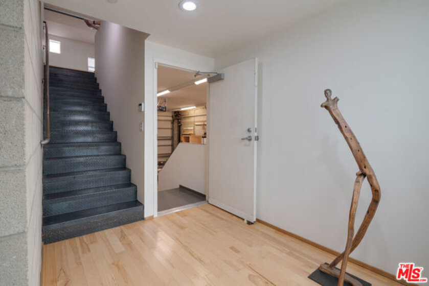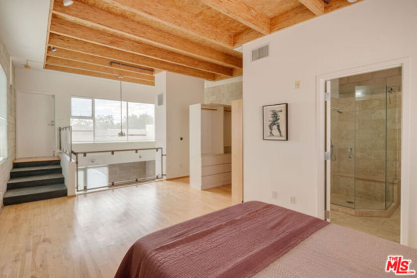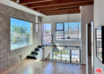 Corner live-work loft now available in one of Hollywood's few fully commercially-zoned (LAC2) condo complexes in the flourishing "Media District" just blocks from Tartine and Petit Trois and directly opposite Pizzeria Mozza on Melrose Ave. Built in 2005, the Highland Lofts are a live/work community for creative-class professionals, artists, and all who appreciate industrial architecture. All the lofts have private entrances, true open plans, soaring ceilings and large windows. This rear corner unit, one of the largest in the complex, has an ample bedroom-level terrace featuring open views west towards Century City. Two full en suite baths and a sliding translucent glass wall on the main floor below, one flight above the entry, allows for a second bedroom or private office. The 2-car garage within the lower level was designed to be flex space and is currently used entirely as a bespoke design workshop. Private entry into the unit is from a path screened from the alley by mature bamboo and a tall custom metalwork fence. Vehicles access the private garage from a gate and common driveway partially below grade. Enjoy remarkably low monthly HOA dues for a unit of this size and quality. Owners pay gas+ electric; remaining DWP costs paid by HOA.