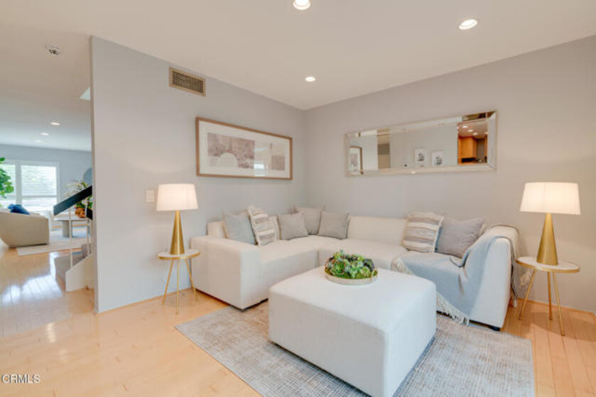 A rare opportunity awaits you in the highly desirable Portola Terrace community of beautiful Monterey Hills. A Los Angeles hidden gem with gorgeous views, a serene, peaceful setting with scenic rolling hills. Convenient to DTLA, Keck USC Medical Center, South Pasadena, Pasadena, all of NELA (Highland Park, Eagle Rock etc...) museums, restaurants, cafes, farmer's markets, Ernest E. Debs Park with hiking trails that lead to hilltop views, a lake and to all major freeways.This tri level townhome shares one wall and feels like a single family home. Upon entry from the main level you are greeted with an open floor plan- a living area with views, a stunning modern gas fireplace, recessed lighting, hardwood flooring throughout, adjacent to the open dining area, two access points to the balcony with natural lighting and wood shutters. The balcony offers a relaxing sanctuary to enjoy a morning cappuccino or watch the sunset view. The family room opens up to the modern kitchen featuring Silas counter top, Blanco granite sink, stainless steel appliances, Bosch cooktop and solid wood cabinetry.The remodeled contemporary 1/2 bath powder room completes the main level. Upstairs offers 3 bedrooms, a primary spacious bedroom ensuite with beautiful views, 2 closets (one walk in), remodeled bathroom features Fleming lighted mirrors, dual sink, quality wood cabinets & drawers, custom shower tiling and plenty of storage. 2 additional bedrooms offer great lighting and share the chic modern bathroom off the hallway. The hallway/linen cabinets have ample storage with lighting and quartz countertop. Lower level has a finished bonus room w/ closet, a laundry space for a washer and dryer, cabinet and storage closet. Direct access to an oversize two and a half cars garage, plenty of storage cabinets. A full house water filtration system, central air & heat and wired security system.As you step into the private and luxurious resort-like backyard/patio you will enjoy the privacy of the hills and nature, great space to entertain dining al fresco and bbq's. The fancy Solara adjustable patio cover and 2 ceiling fans will surely keep you cool in the summer or can offer more sunshine to meet your preference. Community sparking pool, spa and lounge chairs under a shady trellis. This home shows true pride of ownership, quality workmanship, well maintained, immaculate move-in condition and with all the upgrades and modern amenities for today's comfortable living!
