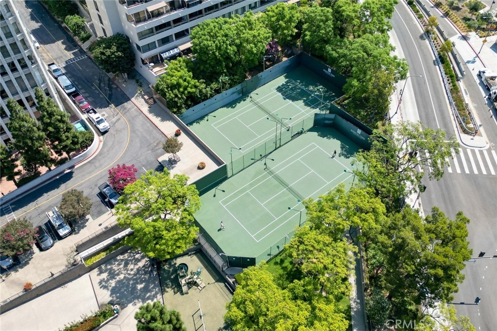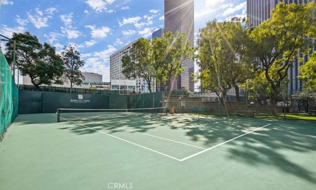 Spectacular city lights and sunset views from the 22nd floor complement this spacious open concept residence at prestigious Bunker Hill Tower. Its contemporary interior design is highlighted by floor to ceiling glass walls, raised ceiling w/ finished beams, wavy textured wall panel and LED track lighting throughout. The open bedroom features incredible views down Grand Ave. An updated bath features a glass walk-in shower, floating vanity w/ mirror and white lacquer linen cabinet. The stunning kitchen is outfitted with stainless steel appliances, double door refrigerator, gas stove top w/ custom backsplash and vent hood. This unit also includes 1 assigned and guest parking space, 24hr attended front desk and more. HOA dues includes all utilities: water, trash, gas, electricity, internet and basic cable. Bunker Hill Tower is an exclusive residential community offering unparalleled amenities like swimmer's pool, tennis and pickleball courts, fitness centers and private event space! Call this incredible space home!