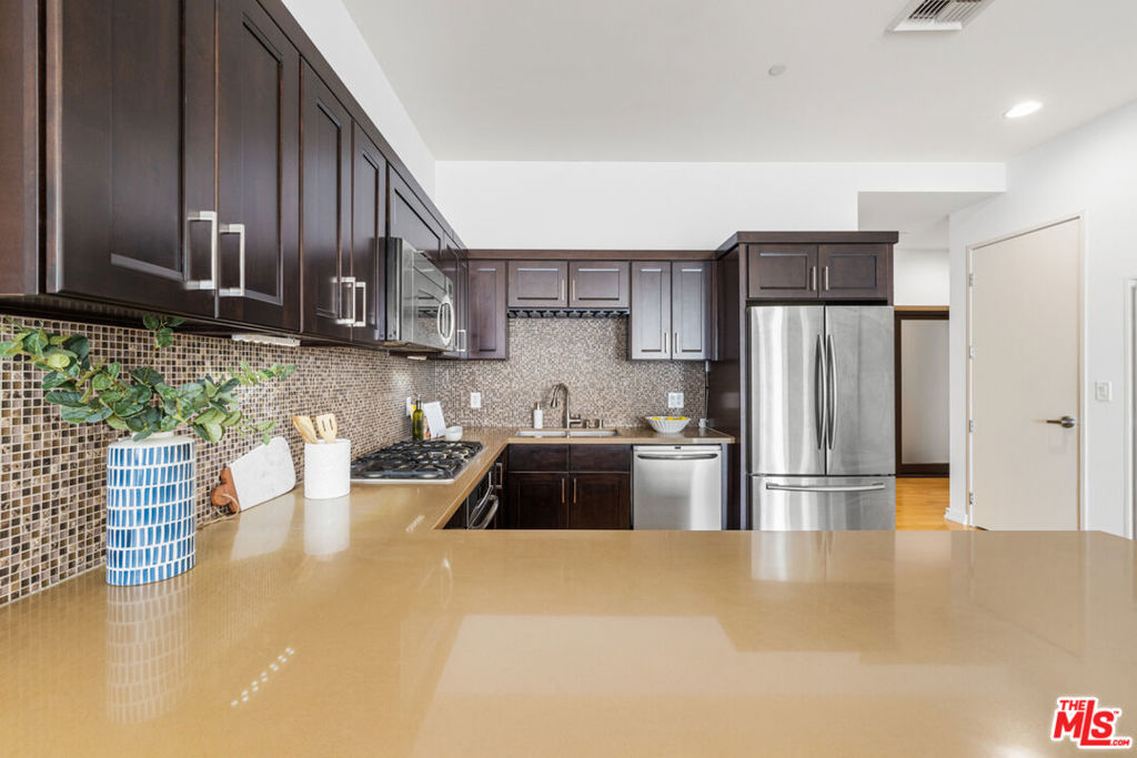 MOTIVATED SELLER!! Sky Lofts is at the epicenter of DTLA in the South Park District. Perched high above the city on the 15th floor at 801 S Grand Ave, this 2-bedroom, 2-bathroom, 1,220 square foot loft-style condo offers a seamless blend of modern finishes, open-concept living, and exciting skyline views. This south facing unit has massive windows, letting natural light spill in to create an ideal backdrop for both day-to-day living and evening entertaining. 10 foot high ceilings add to the loft style vibes. The kitchen is open to the living room with a breakfast bar/island with plenty of storage and seating capability as well as a dining area between the kitchen and living room. Off of the living room there is primary bedroom suite with a spacious ensuite bathroom that includes a double vanity, a large tub and separate shower. Attached to the primary bathroom is a large walk-in closet. The 2nd bedroom, off the main entryway, is perfect as an office or guest bedroom and situated next to the 2nd full bathroom. There are light hardwood floors throughout the unit giving it a modern and bright tone. In addition, there is an in unit washer and dryer closet and central heat and air conditioning. The list of building amenities are impressive - a premium updated gym, a movie/media room with comfy theatre style seating, a clubhouse/entertainment room with a full kitchen that can be booked for events and a 24 hour security desk in the lobby. The unit includes two side by side parking spaces in the underground garage. There is a separate garage on site with ample visitor parking for guests. Nightlife, dining, entertainment and shopping are minutes away. Notable restaurants nearby like Bottega Louie, Water Grill, 71 Above and LeGrand. Across the street from Whole Foods and within 5 blocks from Crypto.com arena. Easy access to the USC campus and USC Keck. If you're looking for a downtown city lifestyle with a walkable neighborhood and vibrant culture, then 801 Grand Ave is the place to be.