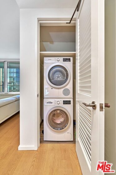 Welcome to Unit #1516 - RARE BALCONY UNIT, Perfect for enjoying a breathtaking combination of city skyline views, lush greenery amenities, and stunning sunsets. This beautifully designed 1-bedroom, 1-bathroom home offers refined urban living in one of Downtown Los Angeles' premier high-rise communities.Floor-to-ceiling windows with custom shades fill the home with natural light, complemented by 7.5-inch oak plank flooring and Nest-controlled central A/C and heating. The chef-style kitchen is appointed with Caesarstone countertops and premium Miele appliances, including an in-unit washer and dryer. The spa-inspired bathroom features a custom vanity and a soaking tub with stone surround.Residents enjoy over 1.7 acres of exclusive amenities, including a resort-style pool and hot tub, state-of-the-art fitness center with yoga and cycling rooms, clubhouse, billiards and game rooms, business and conference centers, dog park, and playground. 24-hour lobby security and direct access to Hotel Indigo and Metropole Restaurant enhance the luxury lifestyle.Ideally located with easy access to the 110, 101, and 5 freeways, and surrounded by DTLA's premier dining and entertainment. Additional parking available on a month-to-month basis.A truly special opportunity to own a balcony unit in Metropolis Tower 2 schedule a private showing today.