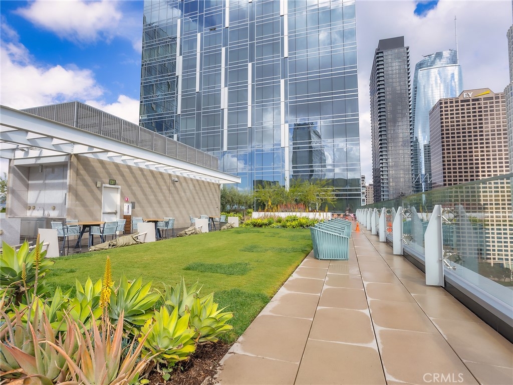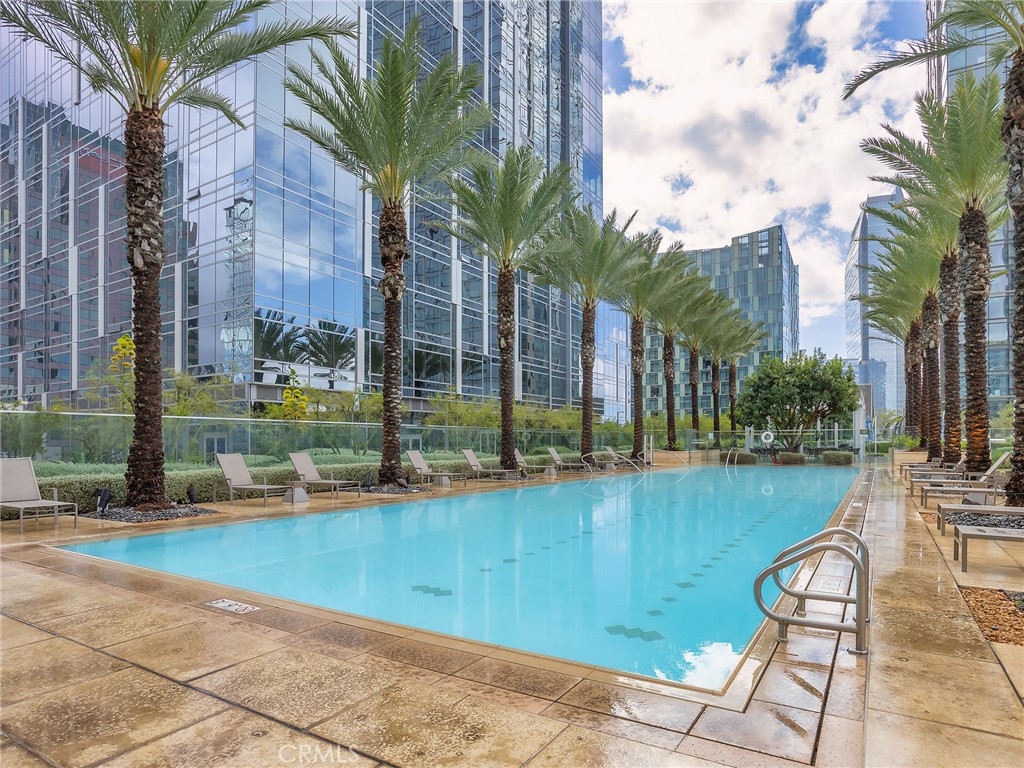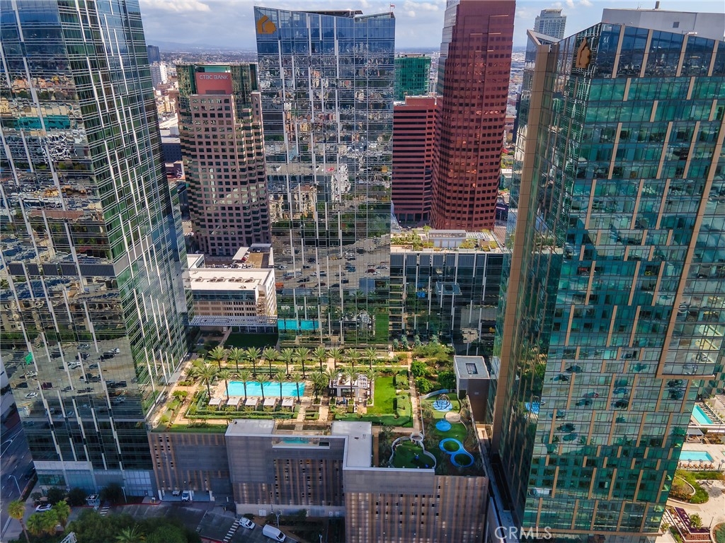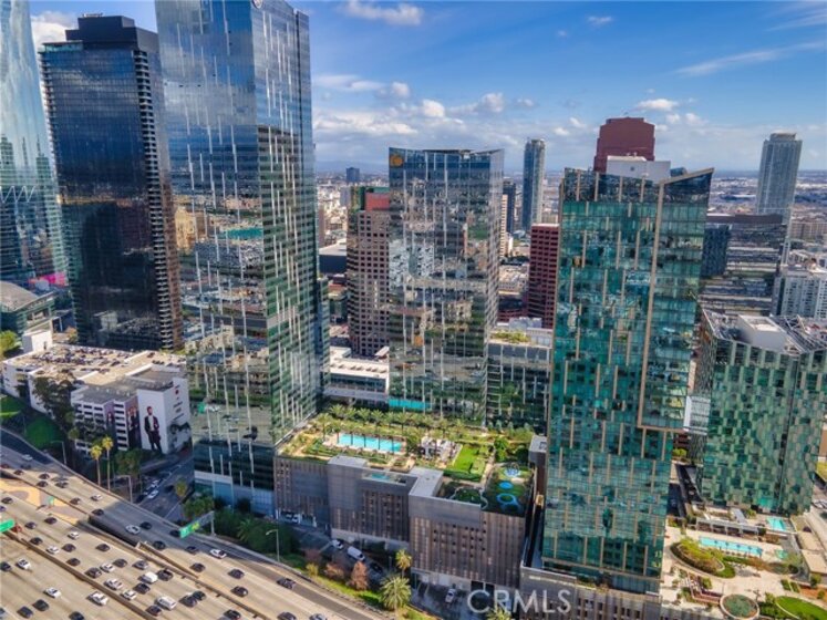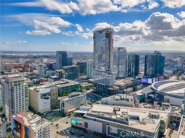 Perched on the 41st floor, this spectacular end-unit residence offers 1,310 square feet of refined living space with 2 bedrooms and 2 bathrooms in a premier luxury high-rise designed by Gensler. A formal entryway welcomes you into a stunning showplace defined by soaring high ceilings and dramatic floor-to-ceiling windows that frame truly breathtaking panoramic views. From sunrise to glittering city nights, enjoy sweeping vistas stretching as far as the LA Harbor, the iconic Hollywood Sign, surrounding mountains, and shimmering city lights. The thoughtfully designed floor plan features a spacious living area that flows seamlessly into a formal dining area, perfect for entertaining and elevated downtown living. The gourmet kitchen is beautifully appointed with a built-in refrigerator, stove, microwave, cooktop, wine refrigerator, expansive center island, and breakfast bar, offering both style and functionality. The spacious primary suite serves as a private retreat, complete with a generous walk-in closet and a well-appointed en-suite bath. A second bedroom and full bath provide comfort and flexibility for guests or a home office. A dedicated laundry area is conveniently located in the hallway. Central heat and air ensure year-round comfort. Experience true resort-style, luxury high-rise living with exceptional amenities including a 24/7 lobby attendant, concierge service, pool, spa, fitness center, putting green, and more. Ideally situated just two blocks from L.A. Live and Crypto.com Arena, you’ll enjoy immediate access to world-class entertainment, along with an abundance of renowned restaurants and vibrant shops right outside your door. This is downtown living at its finest, elevated, sophisticated, and unforgettable.