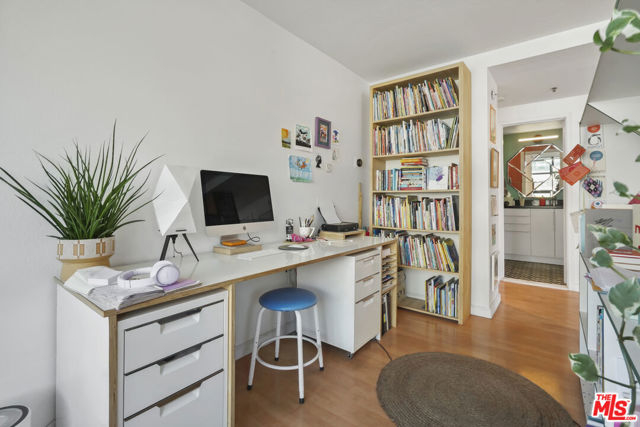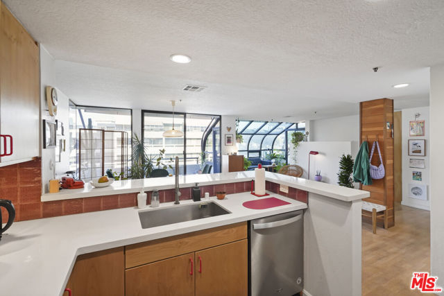 Stunning remodeled unit with quiet poolside & city views at the Promenade West. Prime downtown location with a short distance to courthouses and civic buildings. Large & Bright Open Floor Plan w/ 1006 SQFT of Living Space + 2 large private balconies with retractable awning. North East exposure offers an abundance of natural light as well as expansive views of the city, courtyard tree tops, and cooler temperatures. Kitchen has been modernized with new mid-century cabinetry, tiled backsplash, quartz countertops, and stainless steel appliances. Remodeled bathroom showcases designer tiled flooring, tiled shower, lighting, cabinetry, and vanity. Hardwood floors throughout living space along with stone tiled flooring in kitchen. Large Master Walk In Closet. 1 assigned parking space in underground secured garage included. Additional monthly parking available if needed. Promenade West is a Full Service Luxury Condominium Community Offering Ample Guest Parking, 24-Hour Security/Concierge, Pool, Spa, Exercise Room, Sauna, On Site Manager, & Basic Cable TV. Common Area Offers On-Site Dog Park, Lush Green Gardens w/ Serene Waterfalls. Local Convenience Store & Dry Cleaners Just Steps Away. Walk to Disney Concert Hall, Ahmanson Theater, Mark Taper Forum, Dorothy Chandler Pavilion, Grand Park, The Broad Museum, Restaurants, Courts, City Hall, & Metro Regional Connector. Walking score of 94 and a public transit score of 100. HOA dues cover water, trash, General liability/fire + EQ insurance. Residents pay for their own electricity + internet.