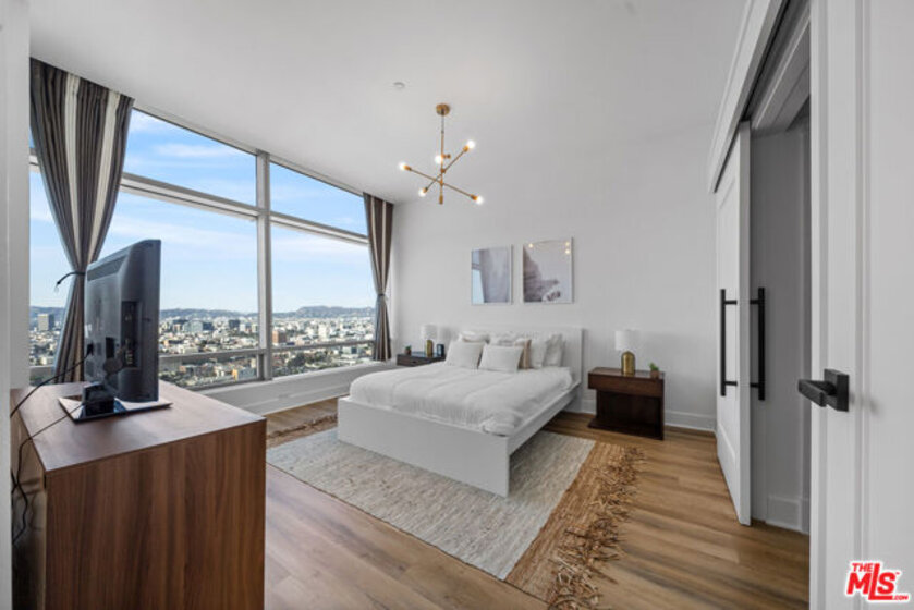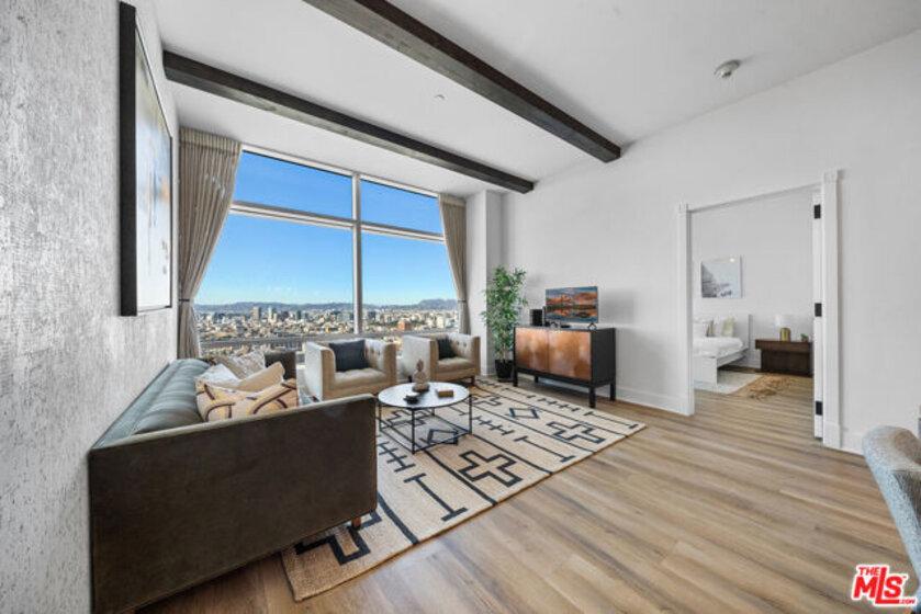 Live above it all in one of Los Angeles' most prestigious addresses. Perched on the 32nd floor of the iconic Ritz-Carlton Residences, this impeccably remodeled and highly upgraded residence defines modern luxury living. From the moment you step inside, you are greeted by walls of glass that frame sweeping, unobstructed vistas from the shimmering Pacific Ocean to the majestic mountain ranges, the legendary Hollywood Hills, Griffith Observatory, and the Hollywood Sign. Facing west, this residence claims the building's most coveted orientation, offering breathtaking daylight panoramas, dramatic sunsets, and a dazzling city skyline at night. The interior has been thoughtfully reimagined with designer details and timeless finishes: custom wood beams, striking gold and black accents, wide-plank flooring, and soaring ceilings that enhance the sense of volume and light. The sleek gray kitchen cabinetry complements the open layout, while a reconfigured floor plan now features a valuable additional walk-in closet in the bedroom, maximizing storage and functionality.Conceived by world-renowned Gensler and developed by AEG, The Ritz-Carlton Residences provide an unmatched lifestyle of refinement and ease. Residents enjoy five-star, white-glove services including 24-hour concierge, valet, doorman, security, housekeeping, and access to the Ritz-Carlton's signature spa and dining venues. Amenities include a resort-style rooftop saltwater pool with private cabanas and bar service, state-of-the-art fitness facilities, and more. Set in the heart of the city's most vibrant district, you are just steps from award shows, world-class concerts, major sporting events, and acclaimed restaurants. A true sanctuary in the sky, this residence includes one valet parking space and one storage unit. Square footage is estimated. Experience the height of sophistication and the ultimate in city living.
