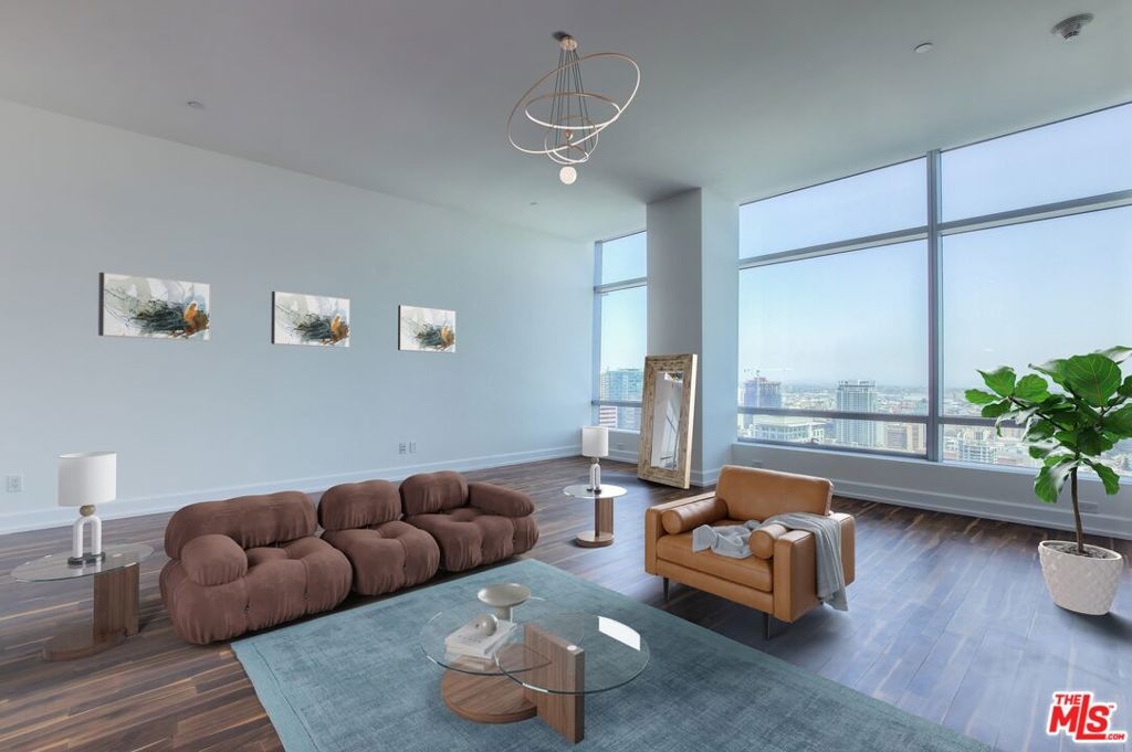 Elegant Lifestyle One Can Expect at The Ritz Carlton Residences. From Valet Parking to Doormen, to Housemen, the list goes on at this posh and luxurious building. Once you enter the 39th floor and proceed to Residence 39G, you're immediately greeted with sunlight and spectacular views this building is known for. Upon entering you have a three quarter bath, laundry room and further on a den area and a lovely kitchen with high end Italian Snaidero cabinetry, gas stovetop with hood fan, and upscale Gaggenau appliances. The living room is ample sized and is open concept to the dining room. The bedroom space feels just as luxurious with its spa-like bathroom and soaking tub with a window to the city views. If that were not enough, you have the opportunity to order room service to your residence and also utilize the Ritz Carlton Housekeeping Team. Pure convenience. Additionally, take a quick elevator ride to the 2nd floor and experience the world-renowned Ritz Carlton Spa or journey into the Marriott portion of the grounds and enjoy a coffee at Illy Cafe or Glance Bar, Sendero Restaurant and more. The 26th floor and 28th floor also offer residents a saltwater pool and bar, conference room, screening room and billiard room. An incredible property that continues to be one of the most popular in all of Los Angeles. All photos with furnishings are virtually staged including light fixtures. Come view this fantastic condominium opportunity and its fantastic location with efficient access to Beverly Hills, Santa Monica, Hollywood, USC, FIDM, Loyola Law School, Century City and more.