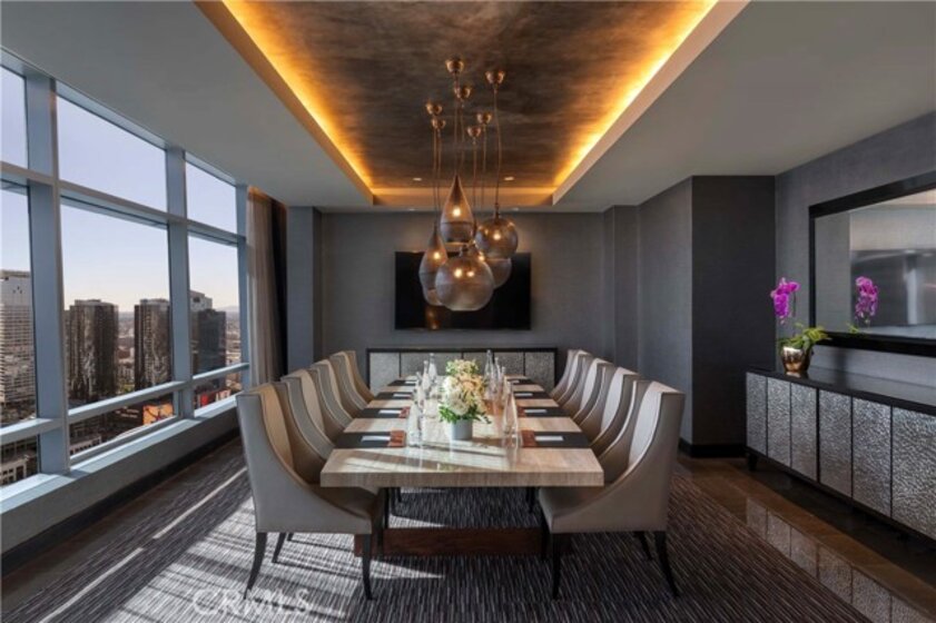 Soar above Downtown Los Angeles in this 46th-floor corner residence at The Ritz-Carlton Residences, L.A. LIVE. This approx. 1,990 sq.ft. 2 bed, 2.5 bath home features floor-to-ceiling windows, an open-concept living/dining area, and breathtaking panoramic views of the city skyline, mountains, sunsets, crypto arena and iconic landmarks. The sleek chef’s kitchen offers European-style cabinetry and top-tier appliances. Both bedrooms are generous en-suite suites, complemented by a stylish powder room and in-unit laundry. Enjoy true five-star living with 24-hour concierge, valet, residents’ lounge with daily breakfast, rooftop pool, fitness center, screening room, and access to Ritz-Carlton spa and hotel services. All in the heart of L.A. LIVE, moments from world-class dining, entertainment, and Crypto.com Arena.